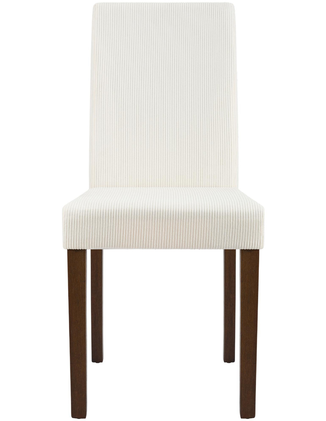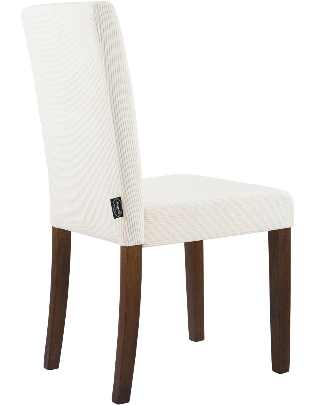 Chaise rétro chic Velours côtelé Blanc crème Bois d'hévéa Marron foncé Aneko