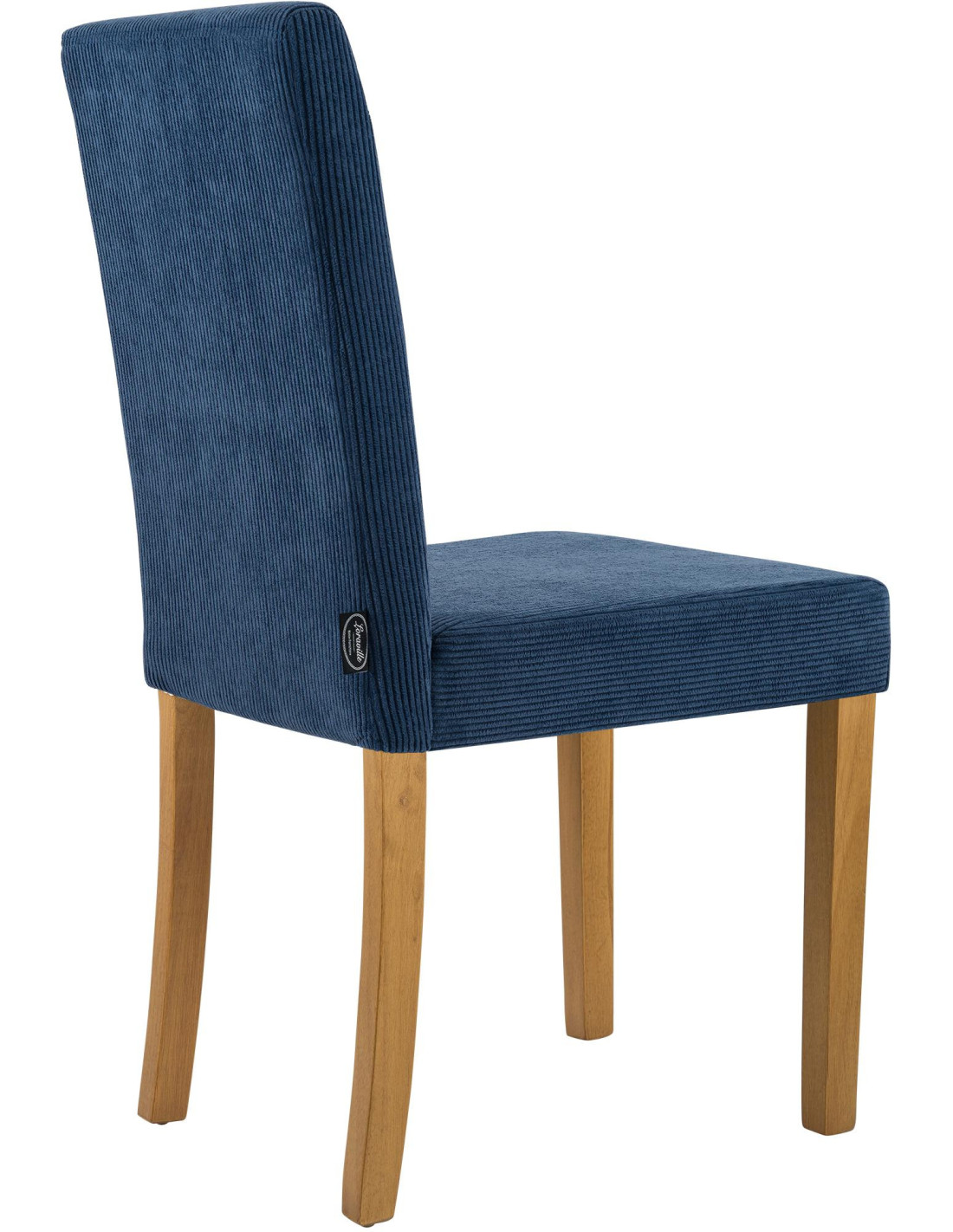 Chaise rétro chic Velours côtelé Bleu Bois d'hévéa Marron clair Aneko - 4