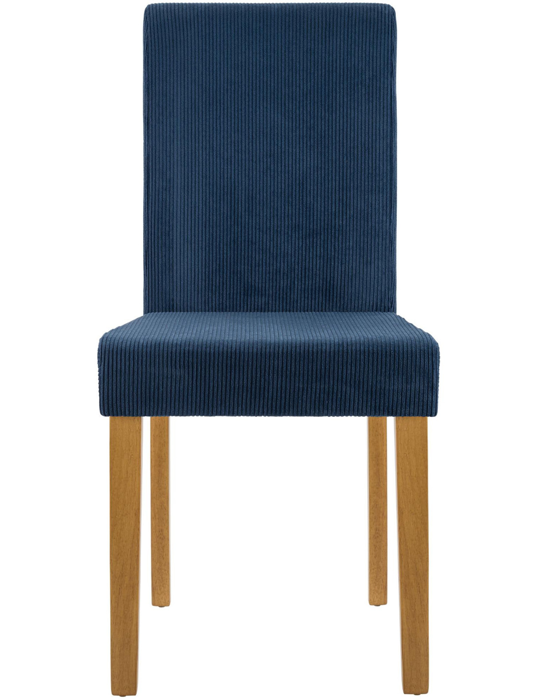 Chaise rétro chic Velours côtelé Bleu Bois d'hévéa Marron clair Aneko