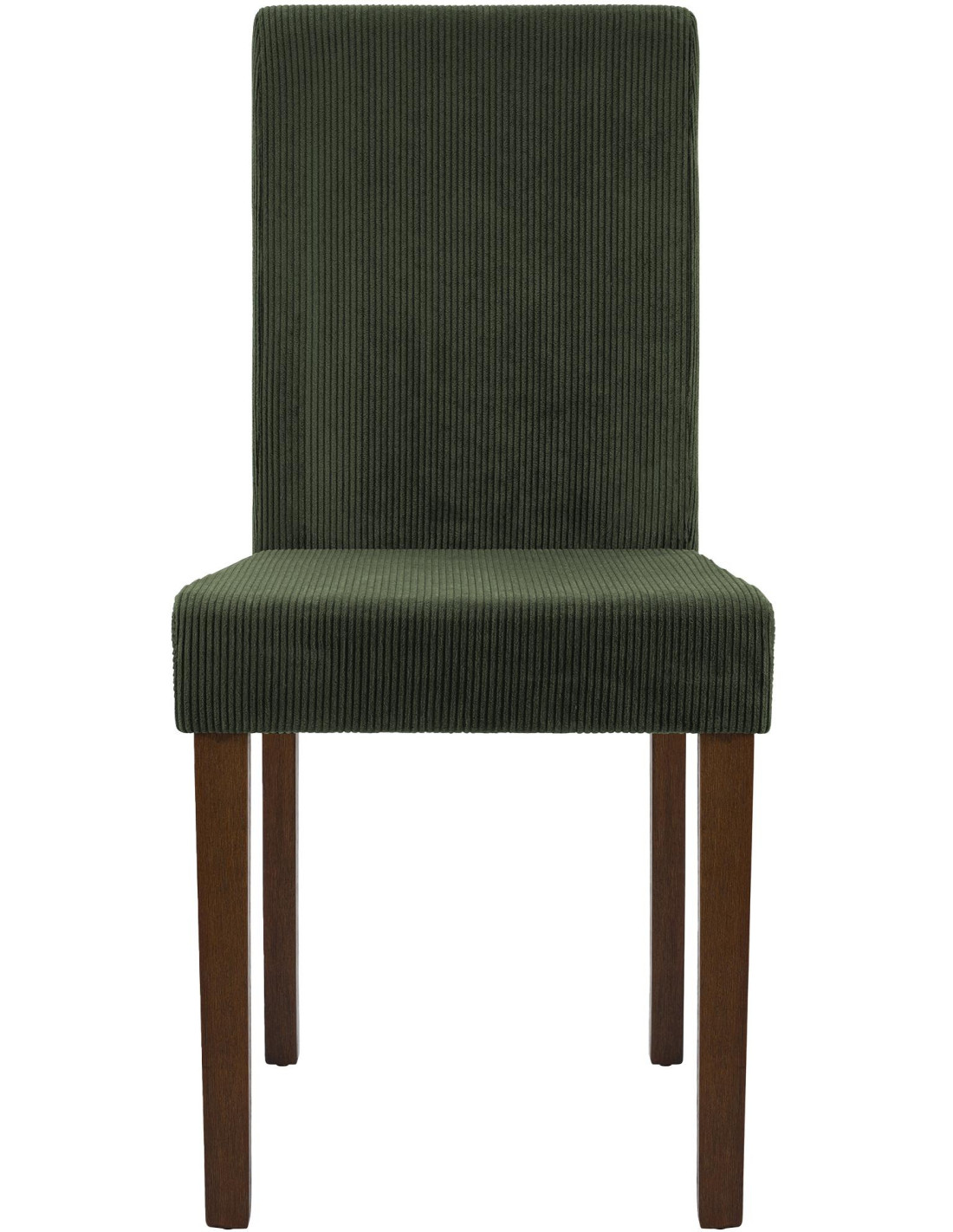 Chaise rétro chic Velours côtelé Vert Bois d'hévéa Marron foncé Aneko