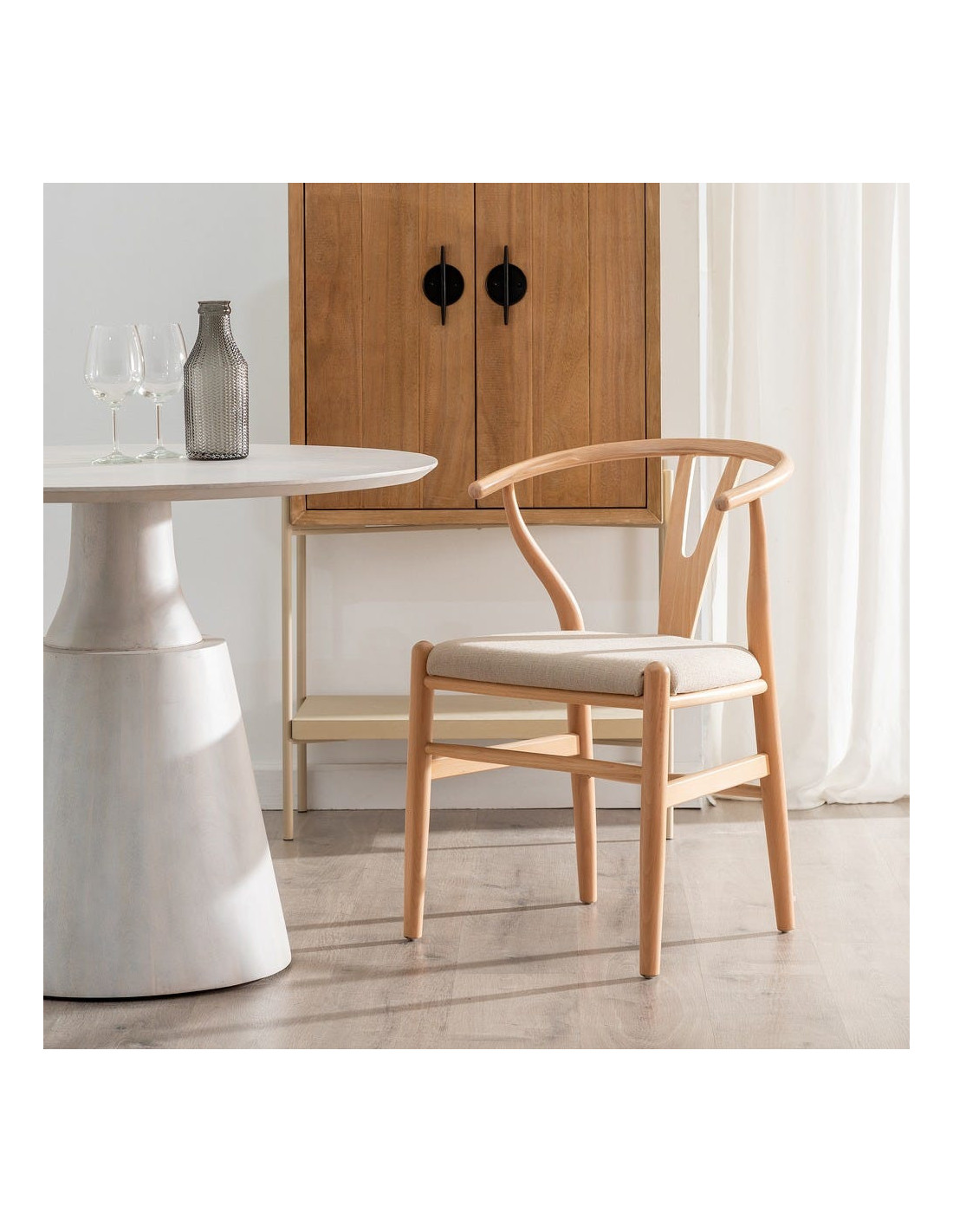 Chaise salle à manger scandinave Beige Bois de hêtre Naturel Vasen - 1