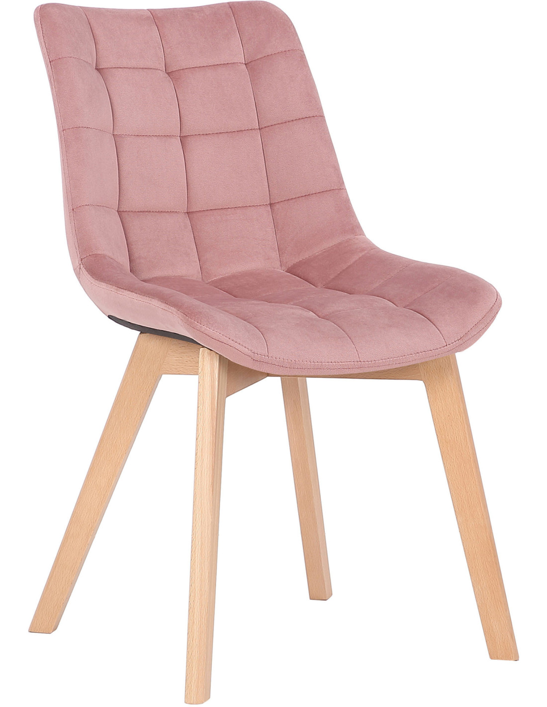 Chaise scandinave matelassée en Velours Rose Bois Naturel Marlyne - 1