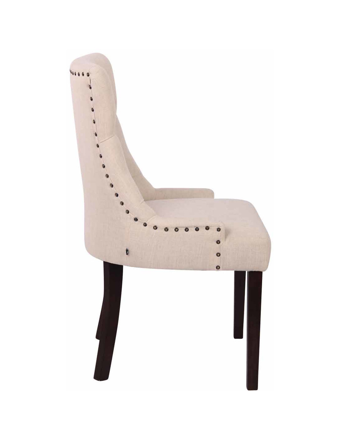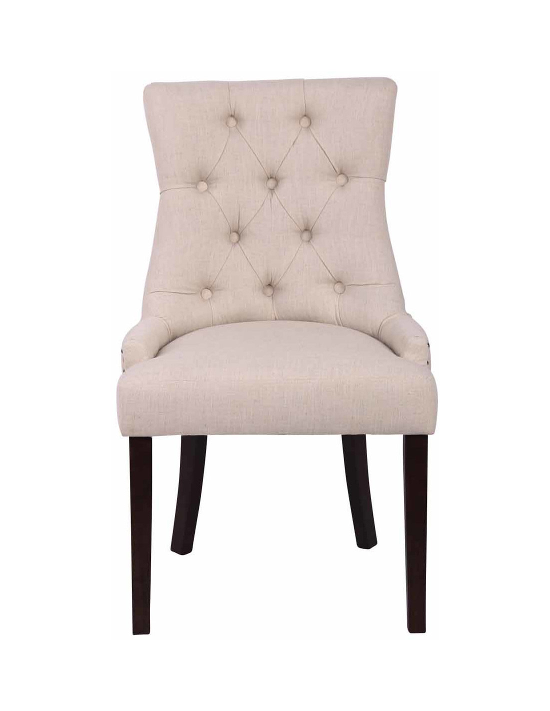 Chaise style vintage Dossier capitonné en Tissu Blanc crème Bois Marron Huguette
