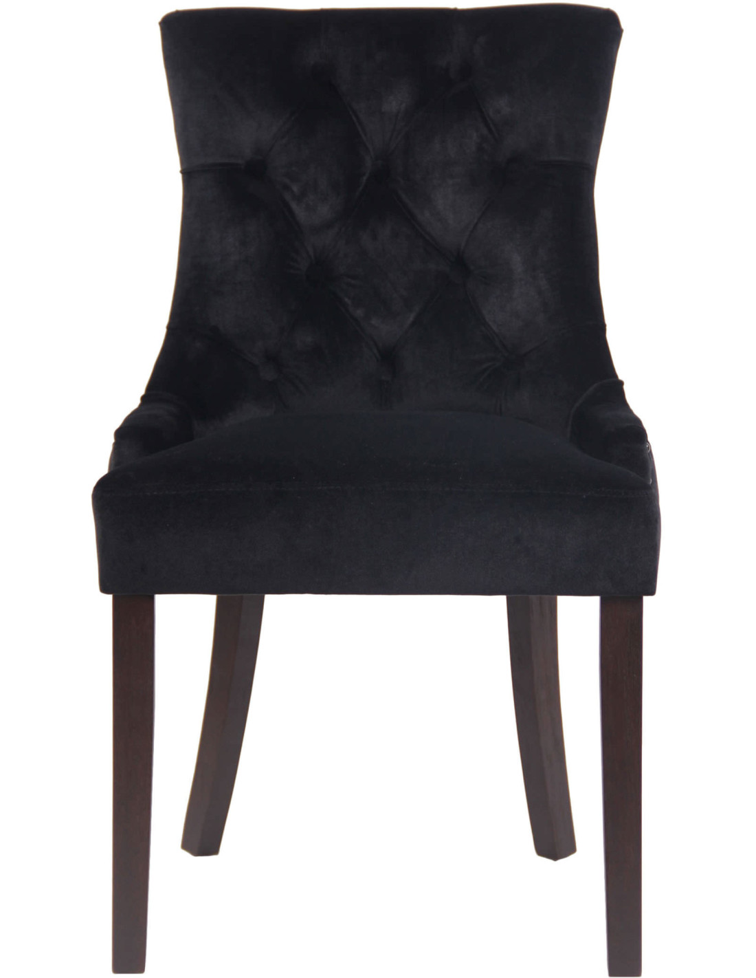 Chaise style vintage Dossier capitonné en Velours Noir Bois Marron Huguette