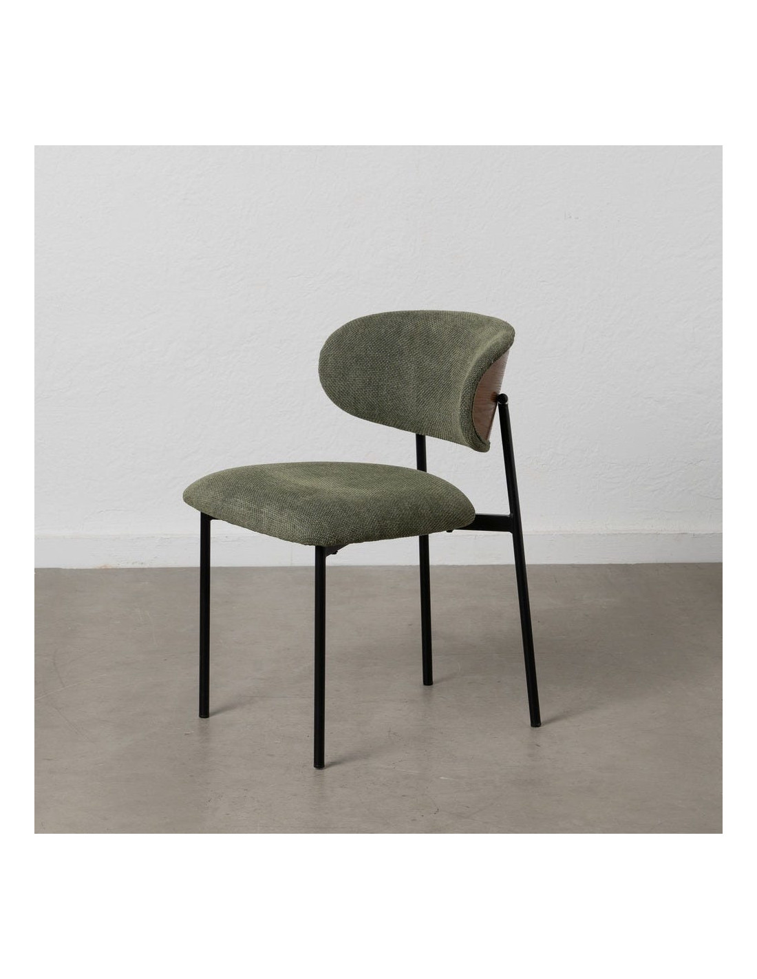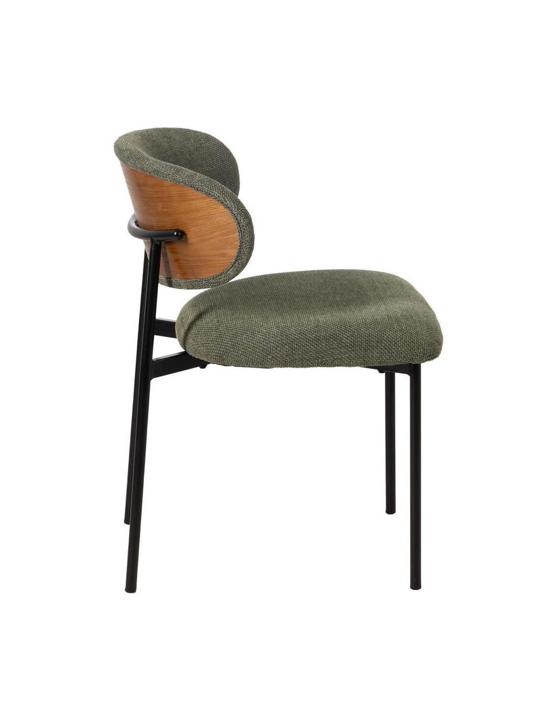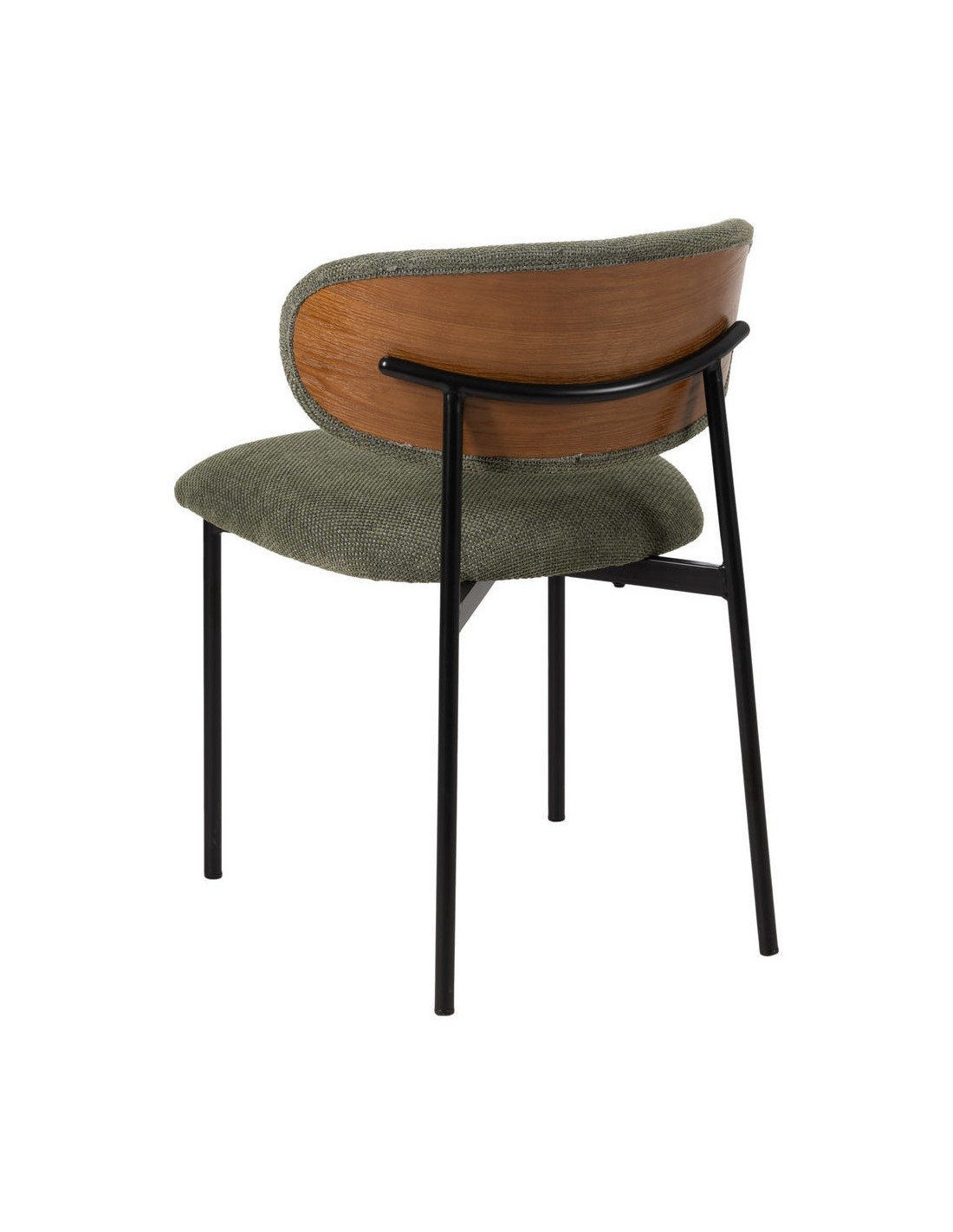 Chaise vintage style années 70 Tissu Vert Métal Noir Bois contreplaqué Naturel Zalina (Lot de 4) - 1