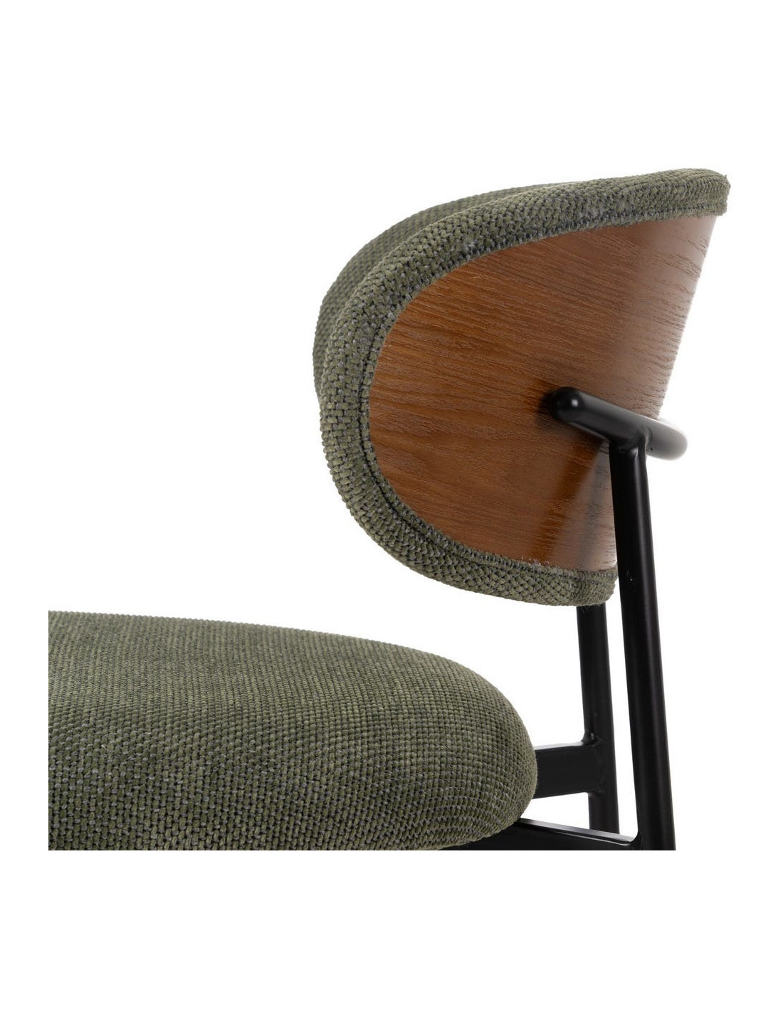 Chaise vintage style années 70 Tissu Vert Métal Noir Bois contreplaqué Naturel Zalina (Lot de 4) - 6
