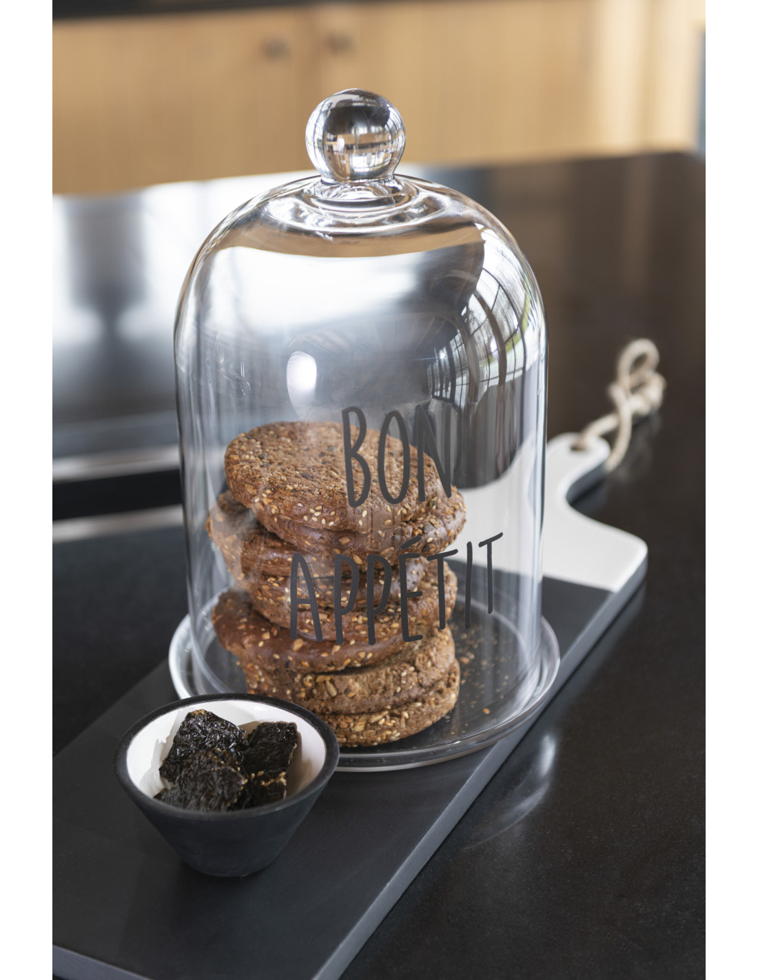 Cloche à gâteaux Bon appétit 18x30 en Verre Transparent Noir Bemira - 2