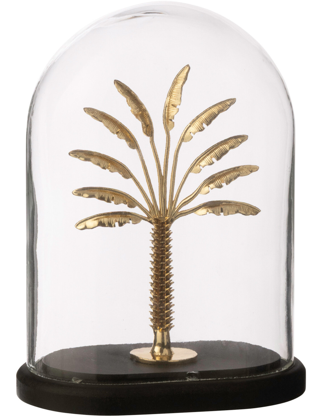 Cloche déco exotique chic Palmier H 22 cm Verre Transparent Résine Doré Evasa