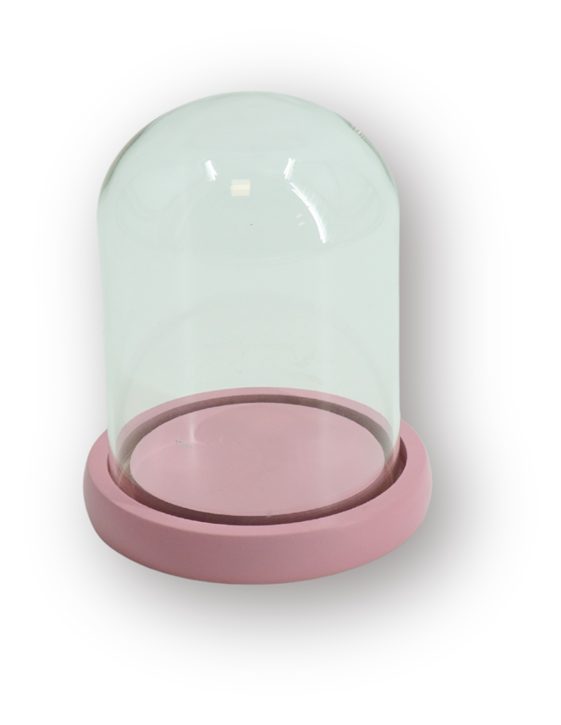 Cloche décorative moderne H 15 cm Verre Transparent Bois MDF Rose clair Bell Jar