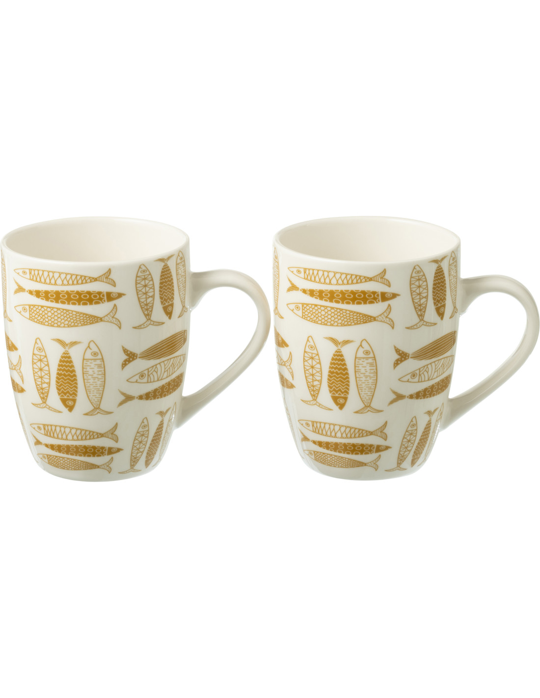 Coffret 2 Mugs 350 ml en Céramique Jaune ocre Blanc Motif poissons Sola
