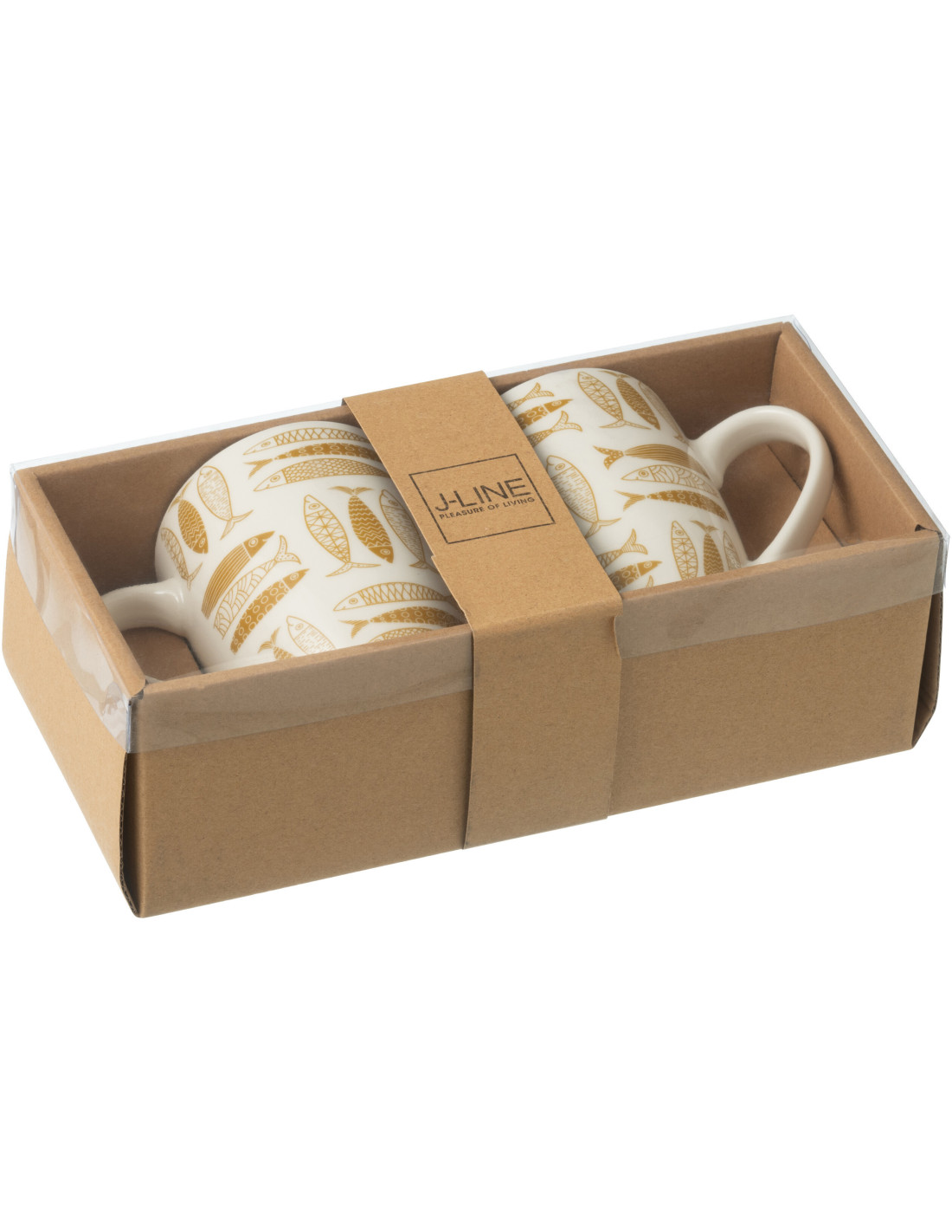 Coffret 2 Mugs 350 ml en Céramique Jaune ocre Blanc Motif poissons Sola - 1