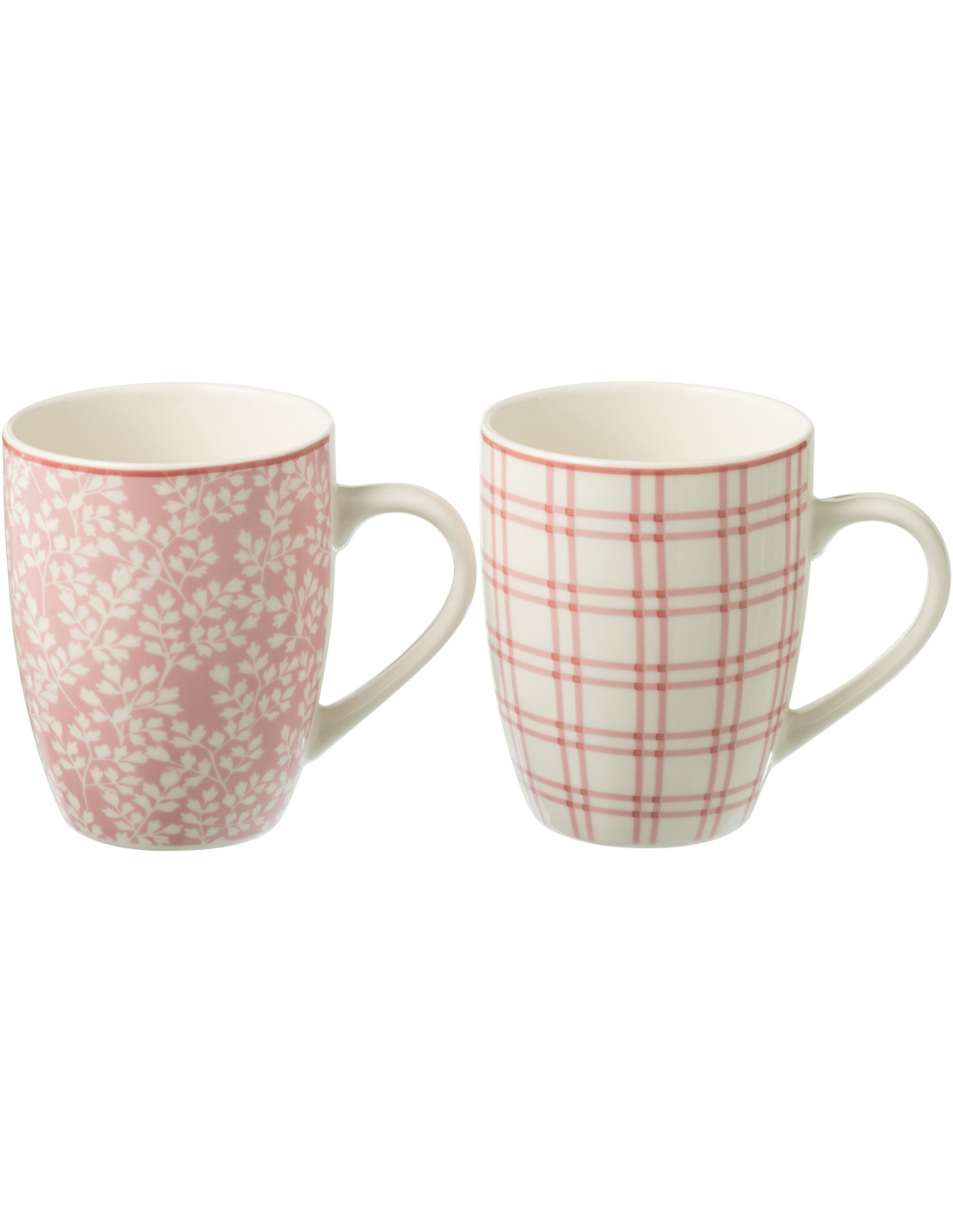 Coffret 2 Mugs 350 ml en Céramique Rose Blanc Motif fleurs et carreaux Keno