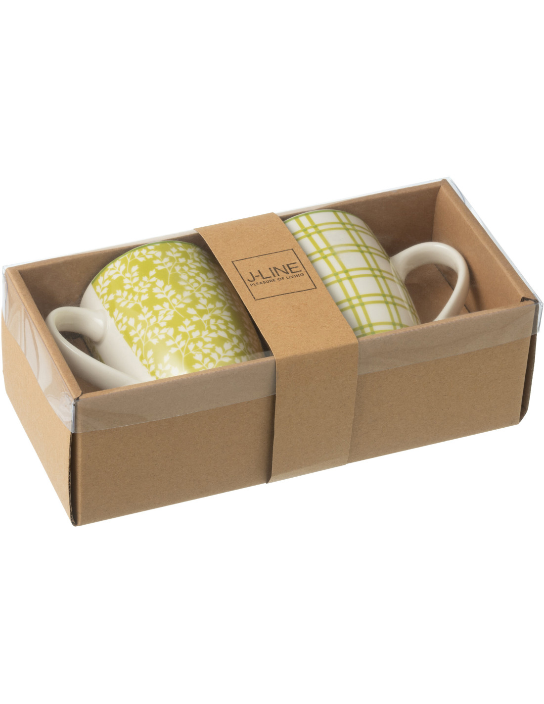 Coffret 2 Mugs 350 ml en Céramique Vert Blanc Motif feuilles Kalo - 1