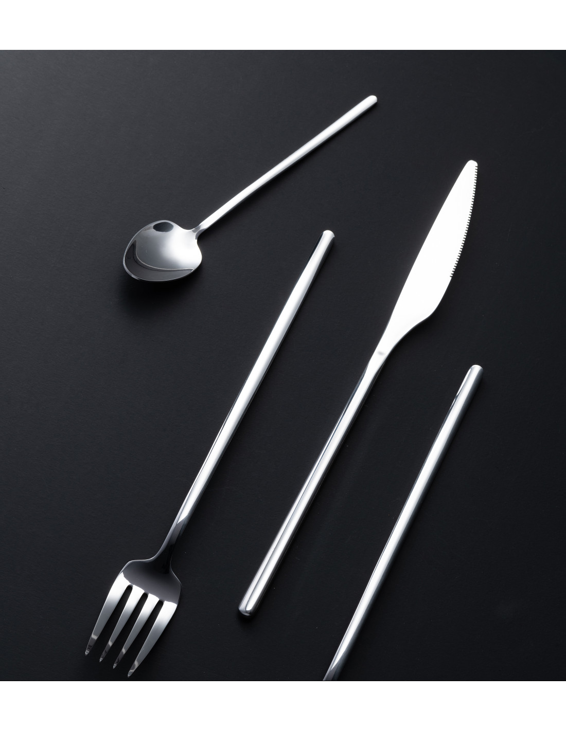 Comprend 6 grandes cuillères + 6 petites cuillères + 6 couteaux + 6 fourchettes