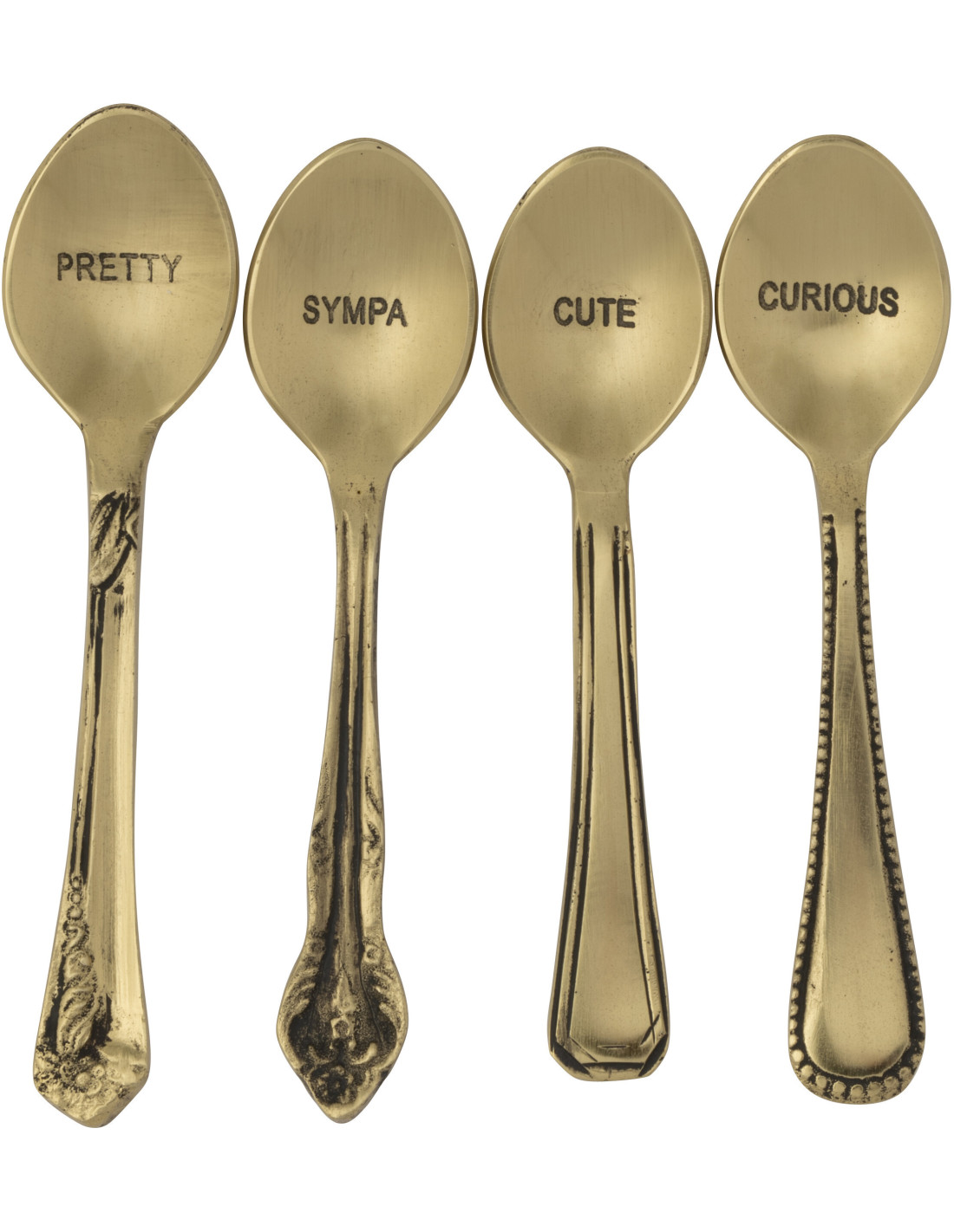 Coffret 4 petites cuillères à dessert Pretty Sympa Cute Curious en Laiton Doré Singulis