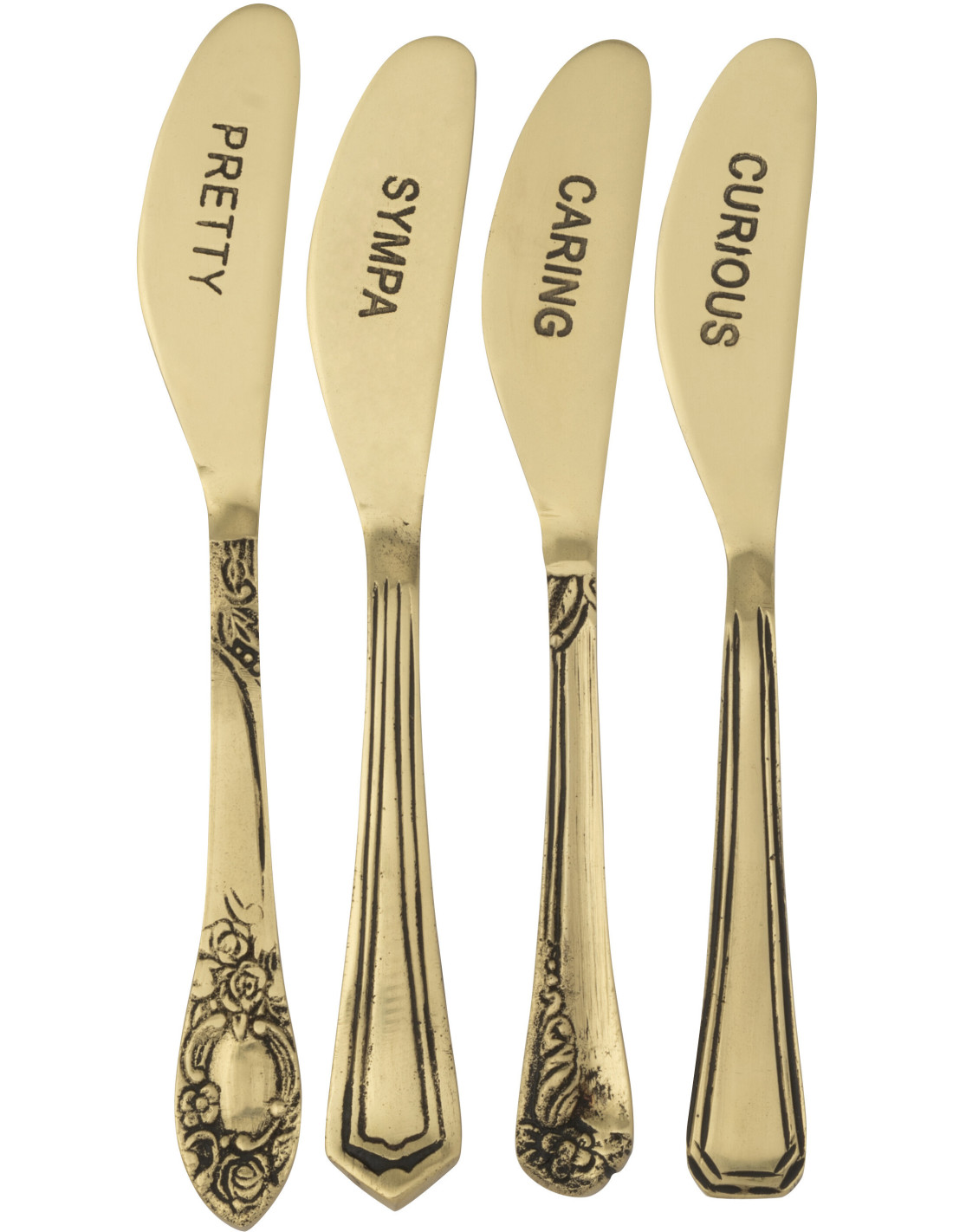 Coffret 4 petits couteaux à dessert Pretty Sympa Caring Curious en Laiton Doré Singulis