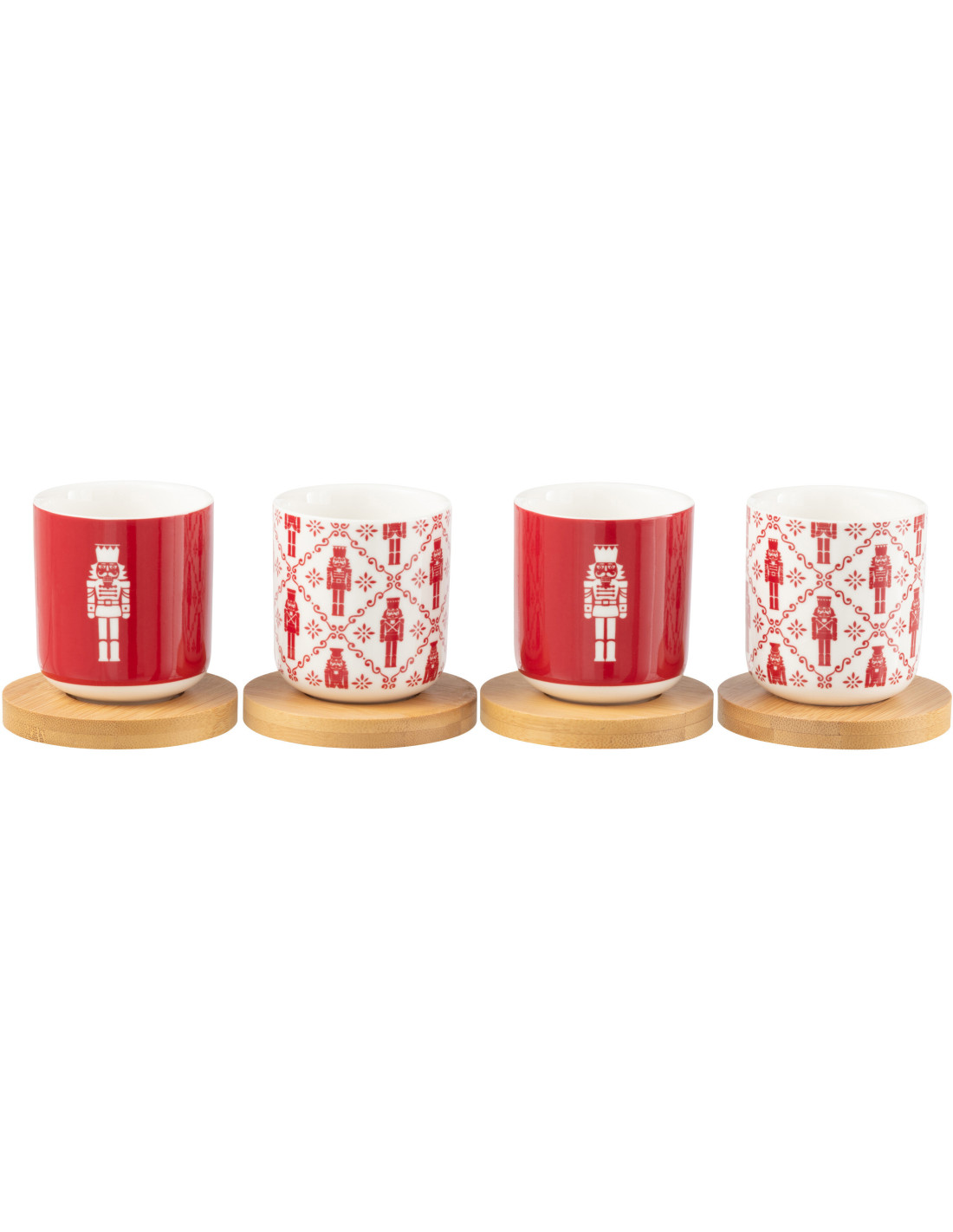 Coffret 4 Tasses à café 100 ml en Céramique Rouge Blanc Bambou Naturel Motif casse noisette Elyrian - 1
