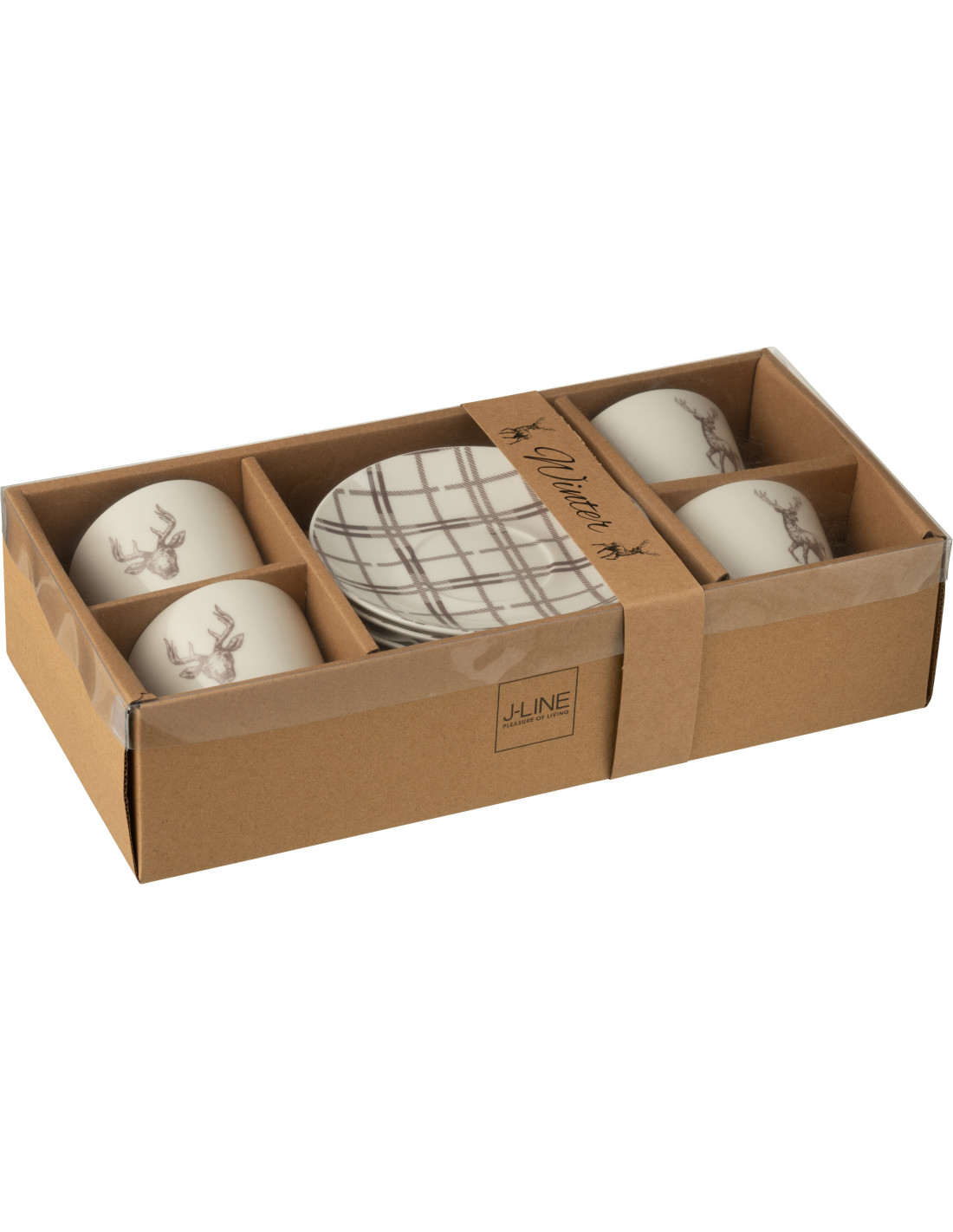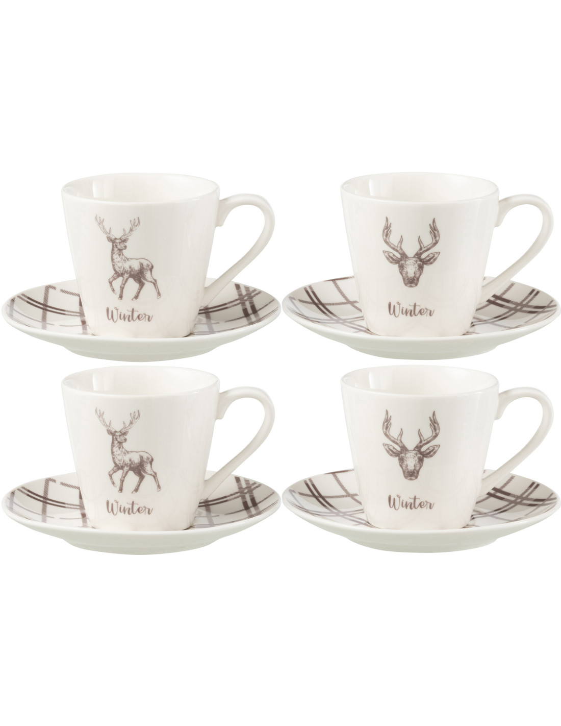 Coffret 4 Tasses à thé 220 ml en Céramique Blanc Marron Motif Cerf Valicor - 4