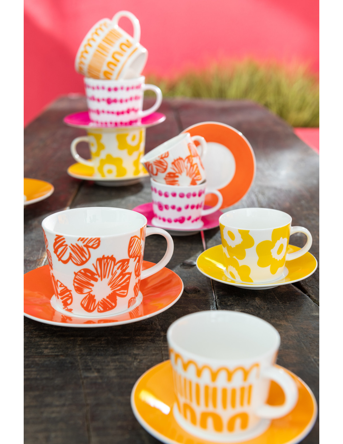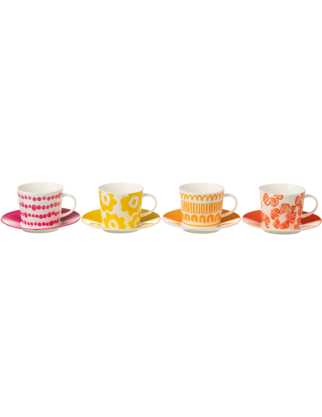 Coffret 4 tasses à thé 220 ml en Céramique Blanc Orange Jaune Fuchsia Candace - 1