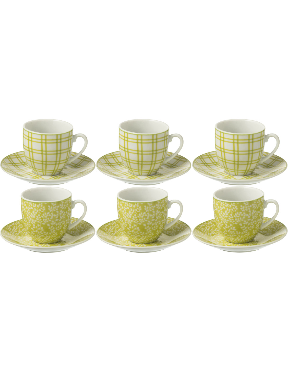 Coffret 6 Tasses Espresso 80 ml en Céramique Vert Blanc Motif feuilles Kalo - 1