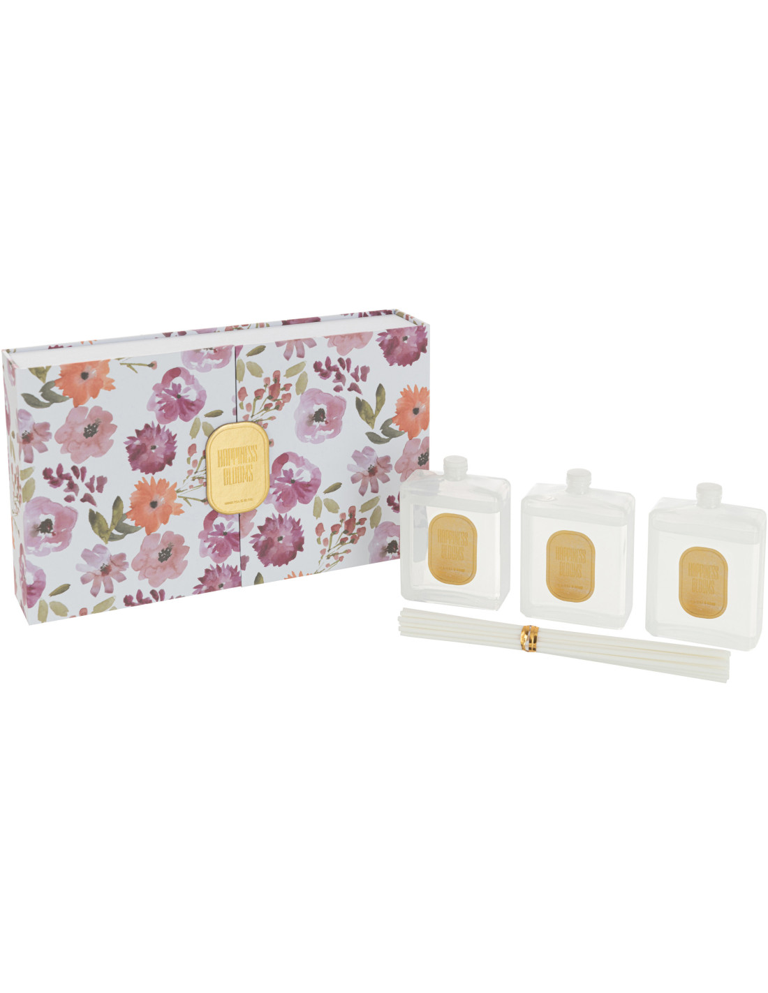 Coffret Diffuseur de parfum Senteur Florale Mimosa & Rose Happiness Blooms 150 ml en Verre Blanc