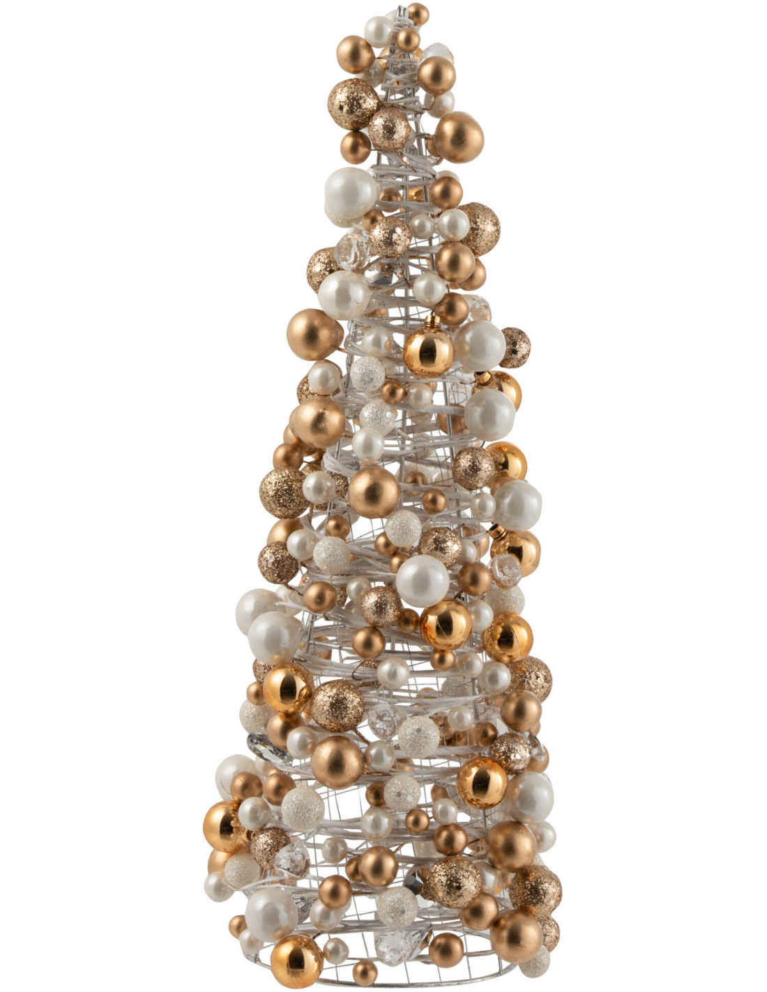 Cône de Noël Boules Hauteur 45 cm en Plastique Blanc Doré - 1