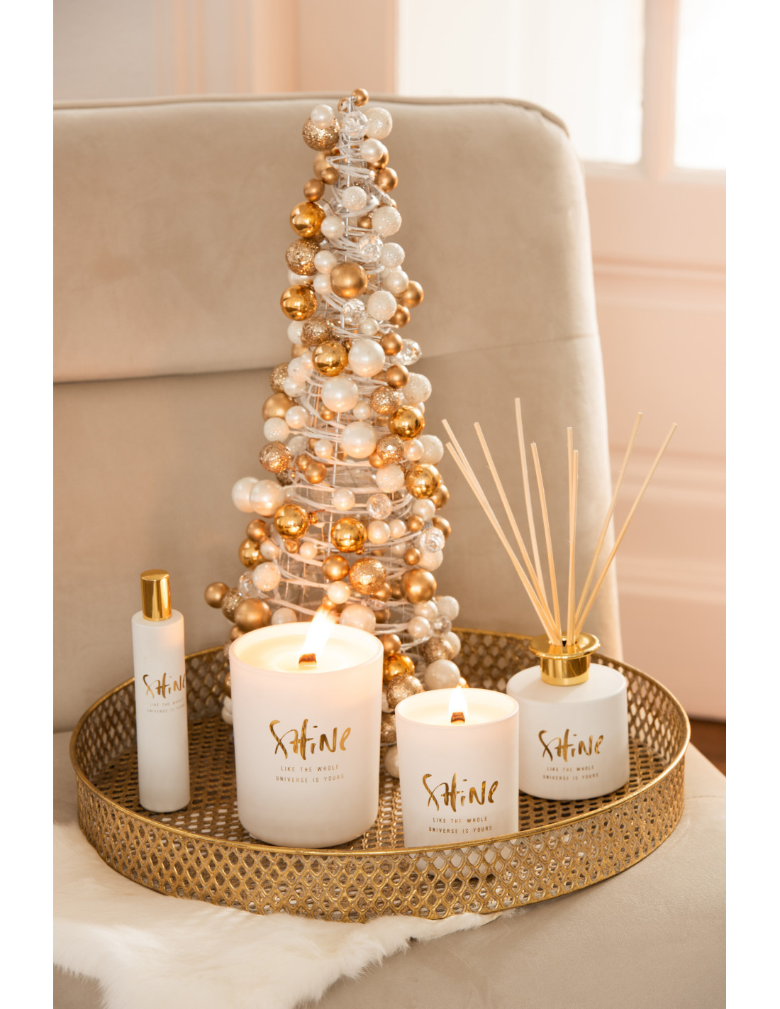 Cône de Noël Boules Hauteur 45 cm en Plastique Blanc Doré