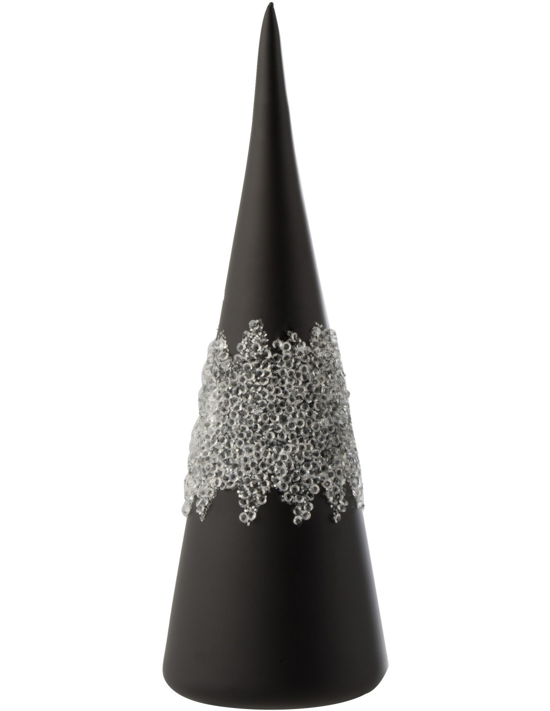 Cône de Noël Hauteur 30 cm en Verre Noir Mat Motif givré