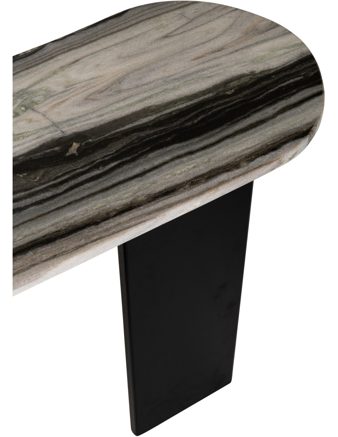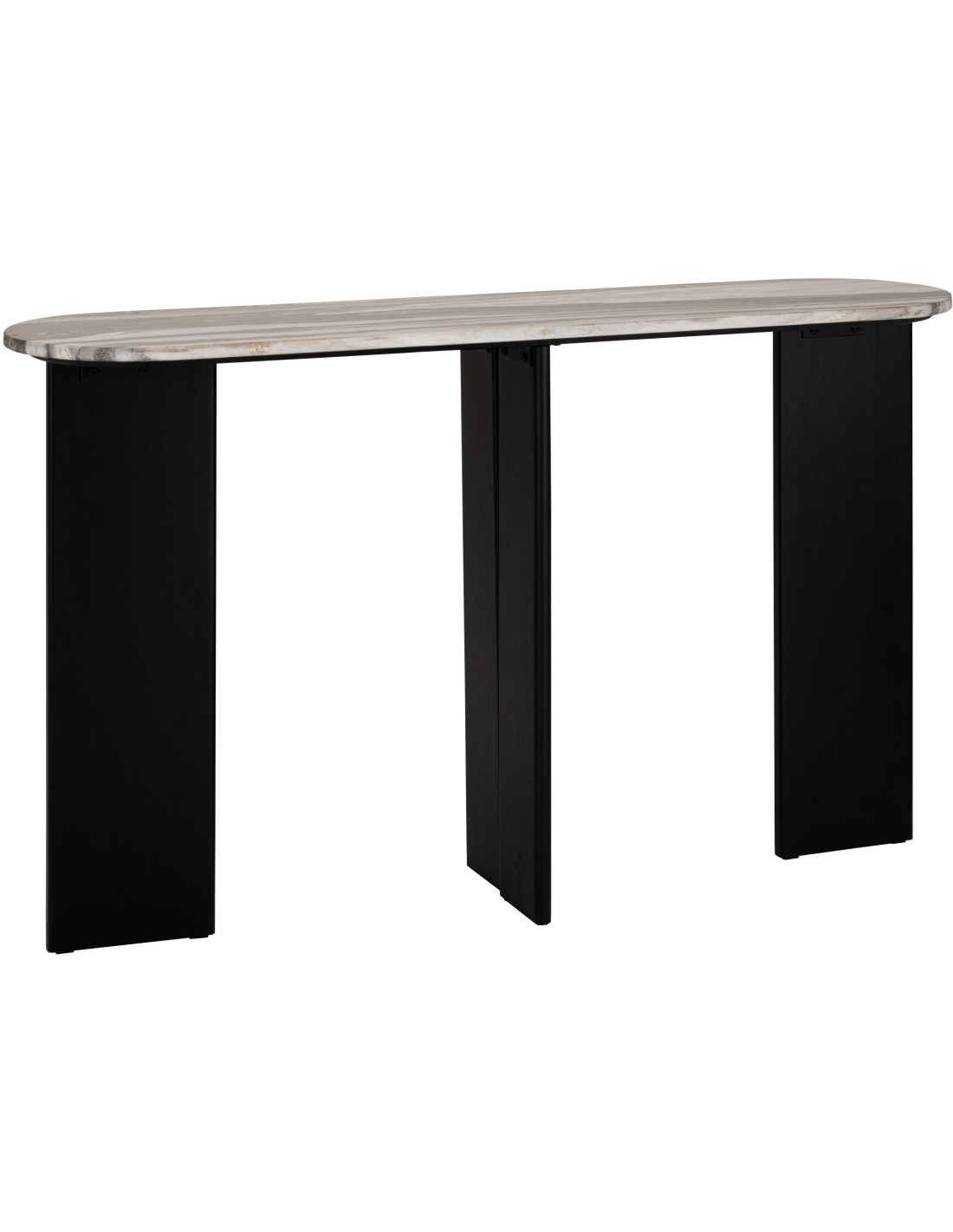 Console design chic Ovale 140 cm Marbre Noir Gris Bois de manguier Mathilde