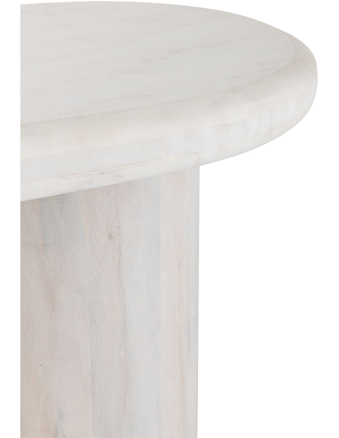 Console design chic Ovale 91 cm Marbre Blanc crème Bois de manguier Marmer