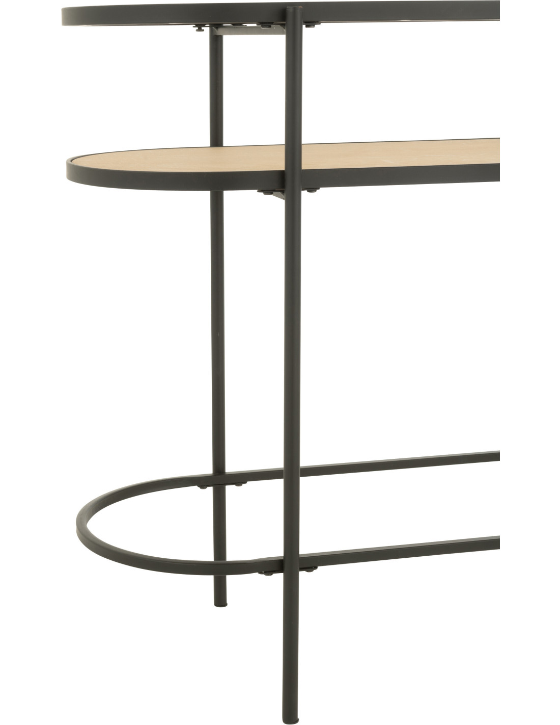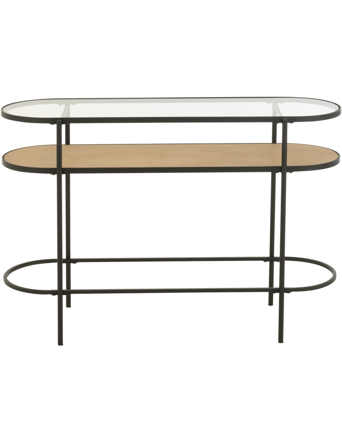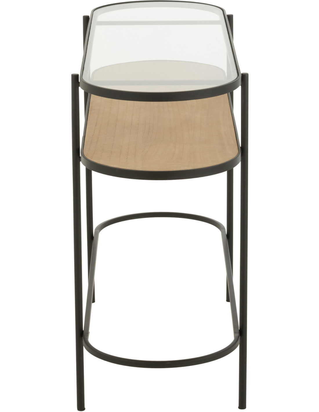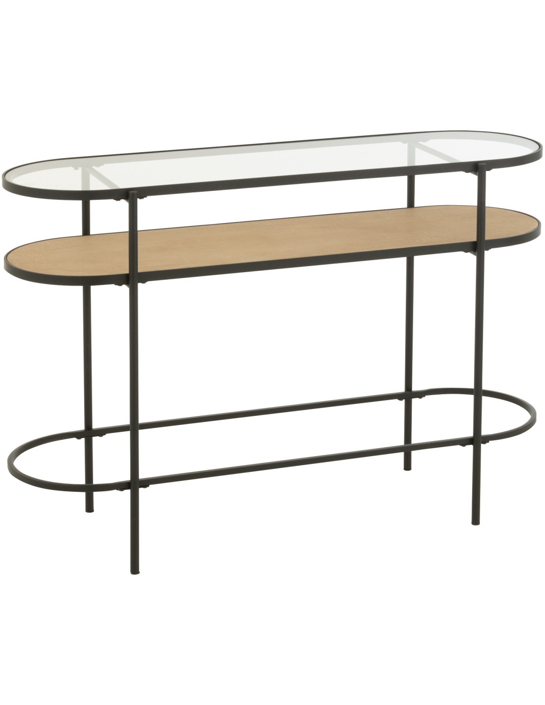 Console industrielle moderne Arrondie 1 étagère en Métal Noir Bois Naturel Verre Transparent