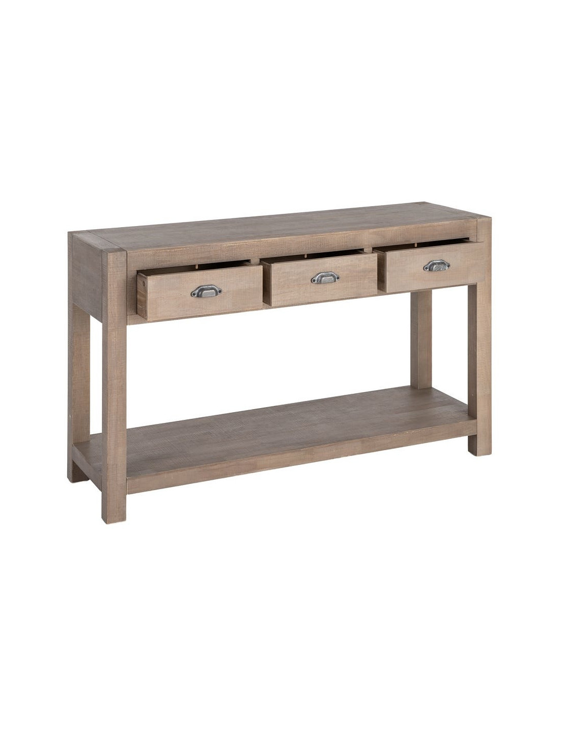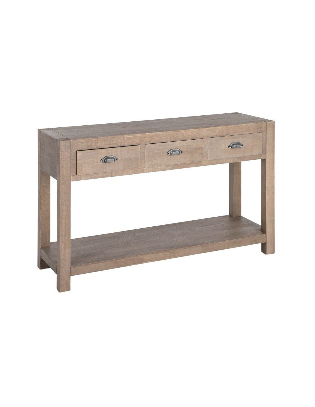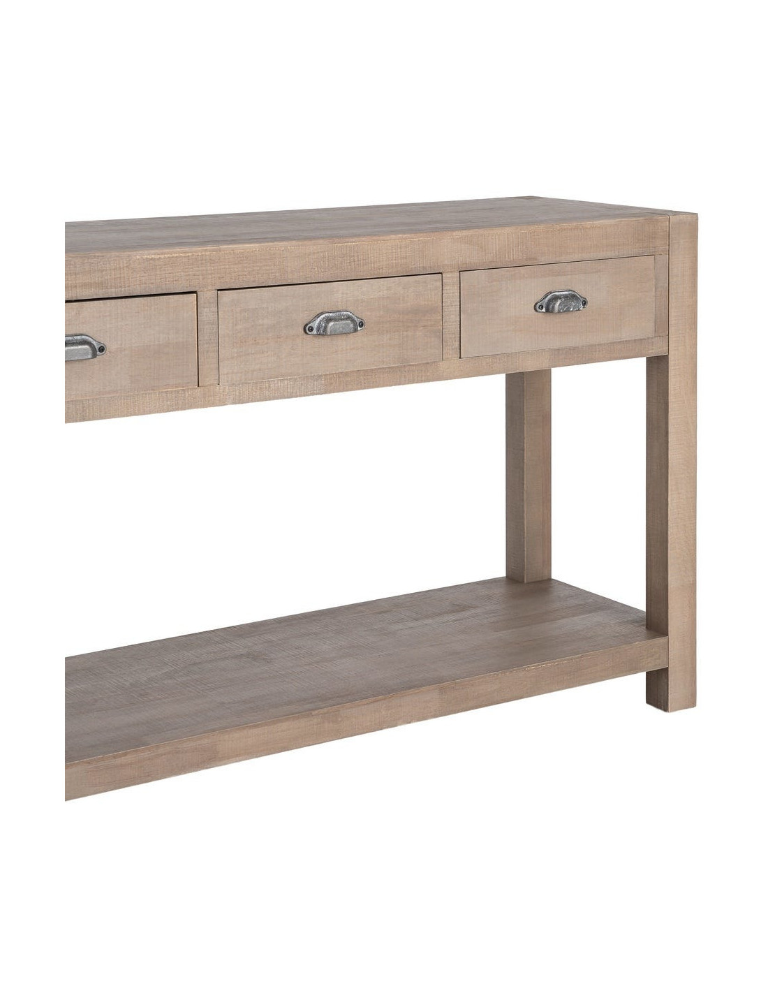 Console Maison de campagne chic Rectangulaire 3 tiroirs 1 étagère 135 cm Bois de pin Naturel Cottage