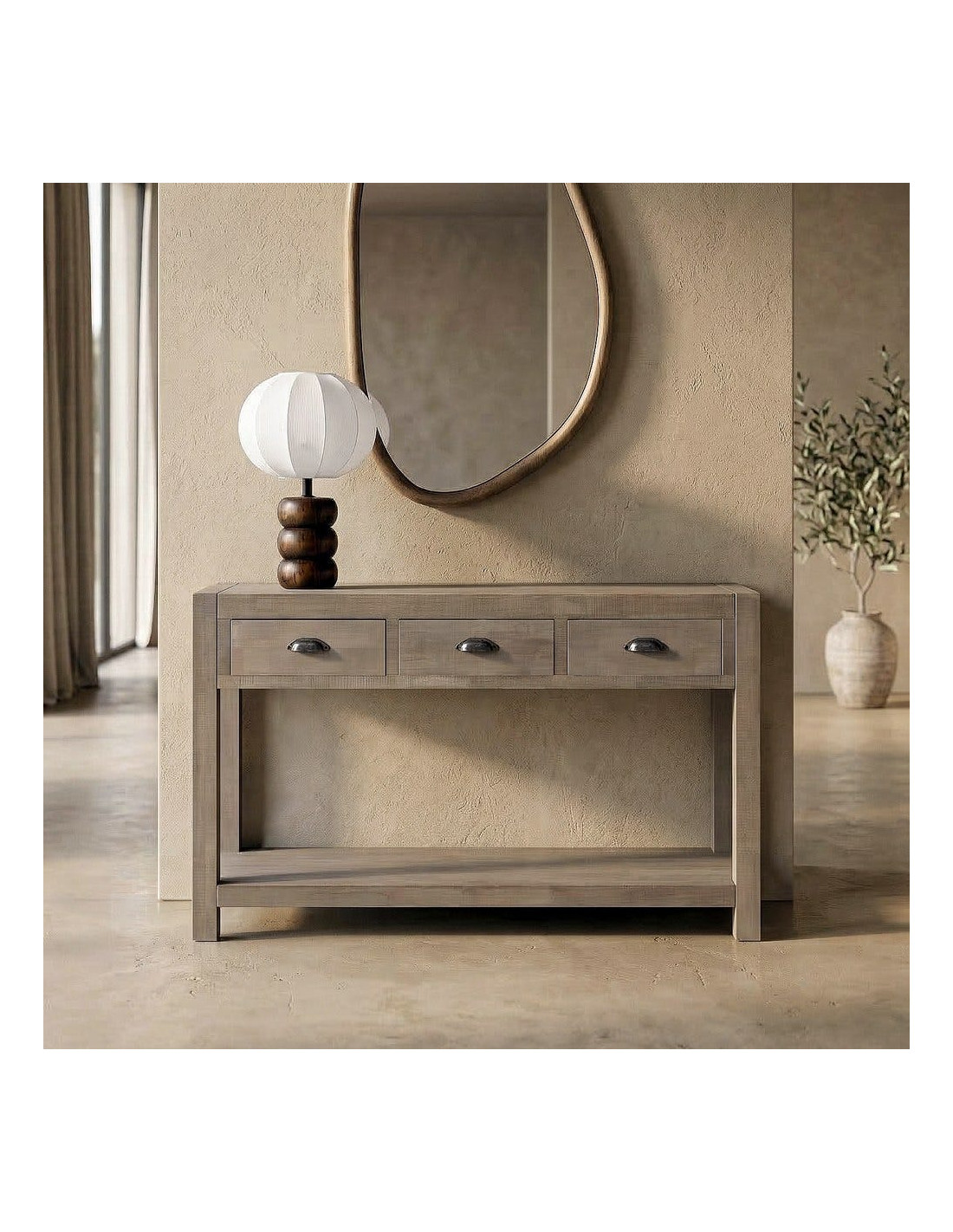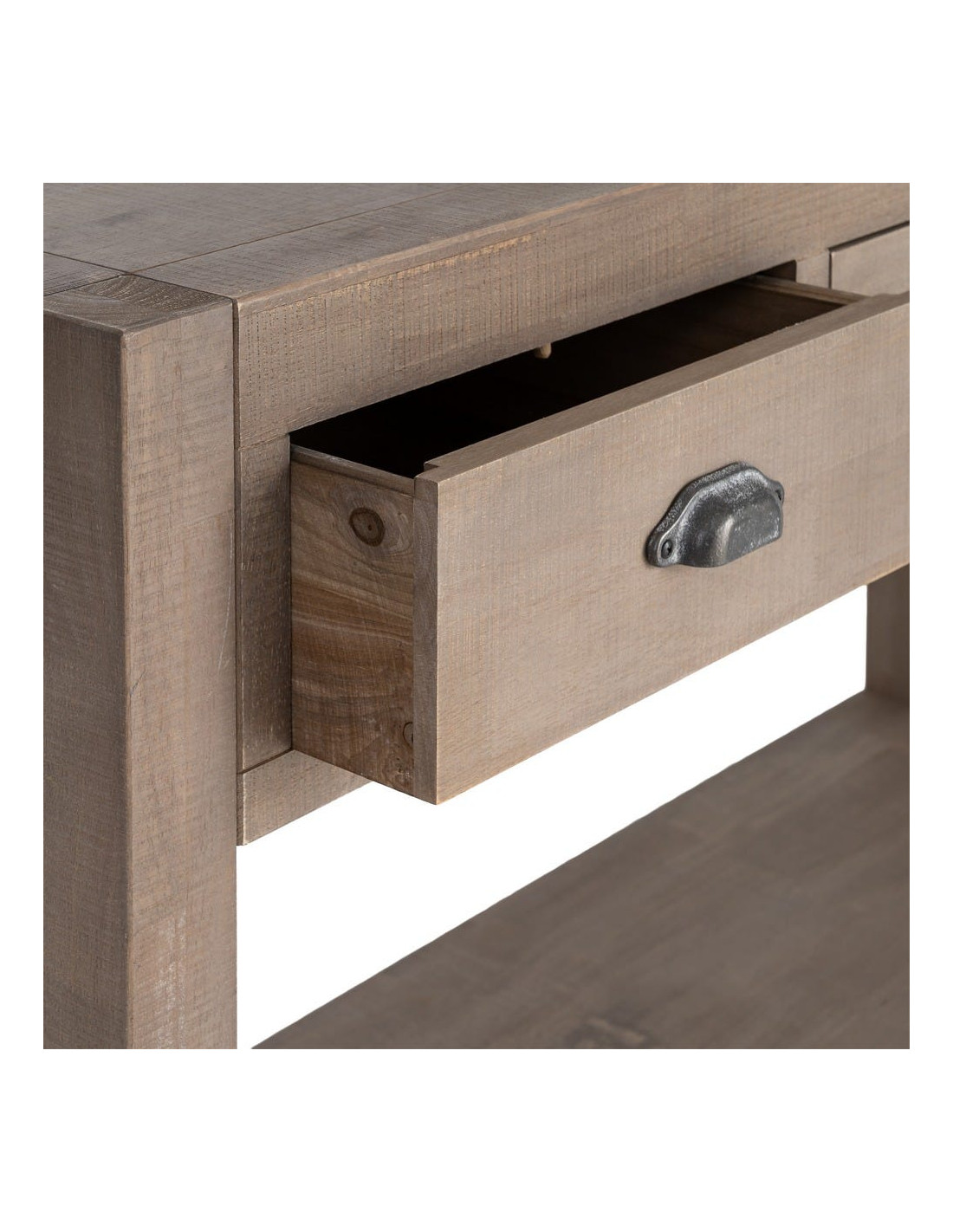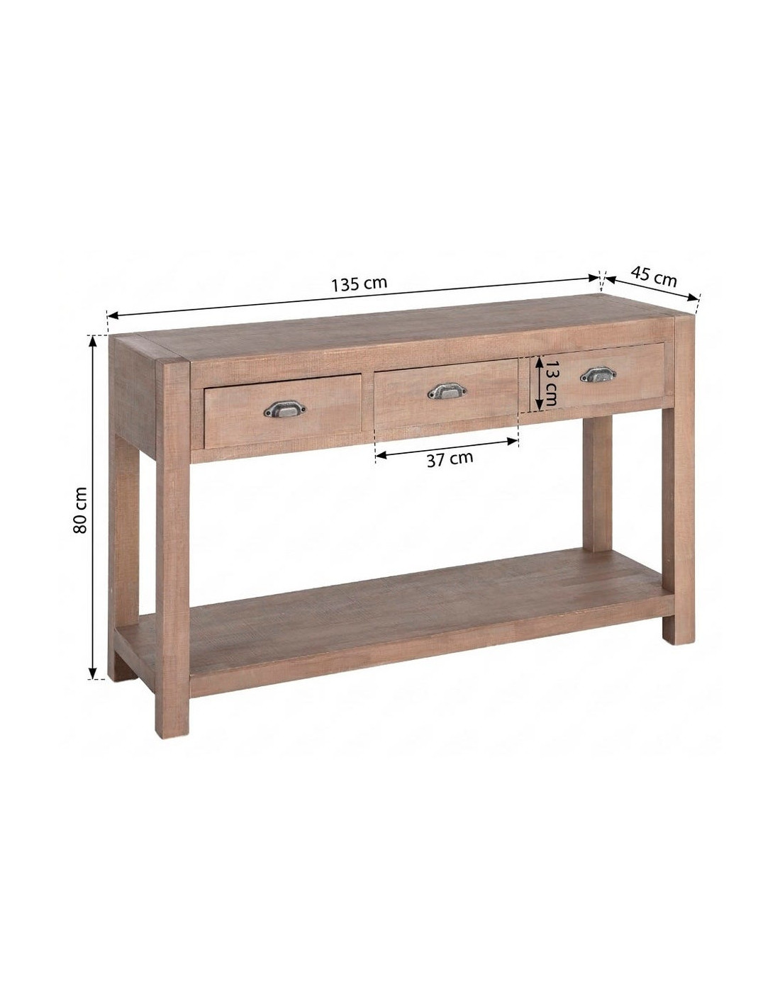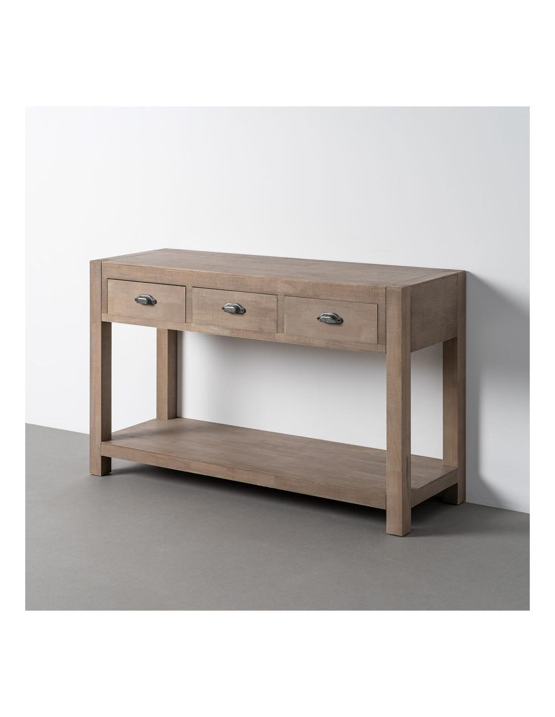 Console Maison de campagne chic Rectangulaire 3 tiroirs 1 étagère 135 cm Bois de pin Naturel Cottage