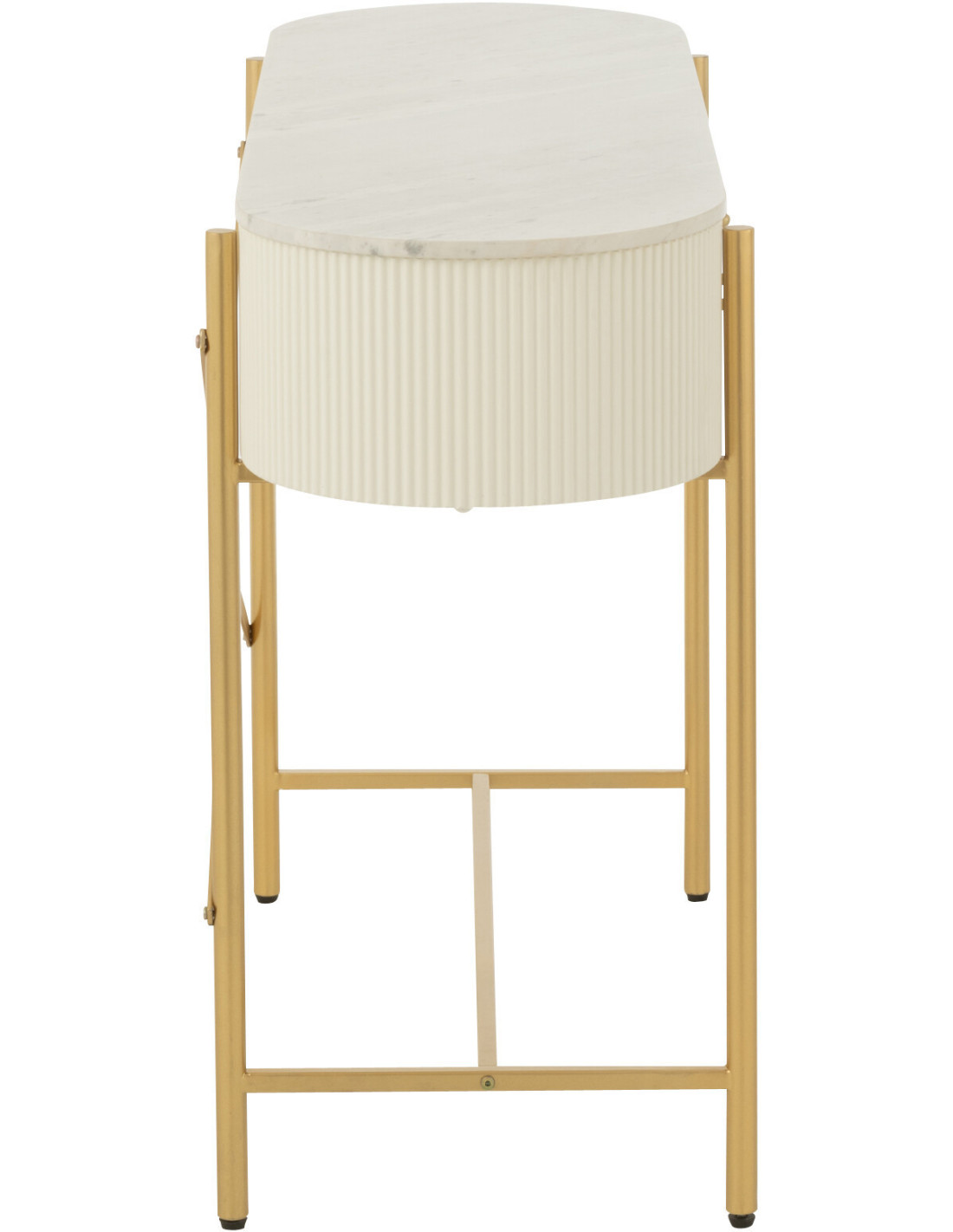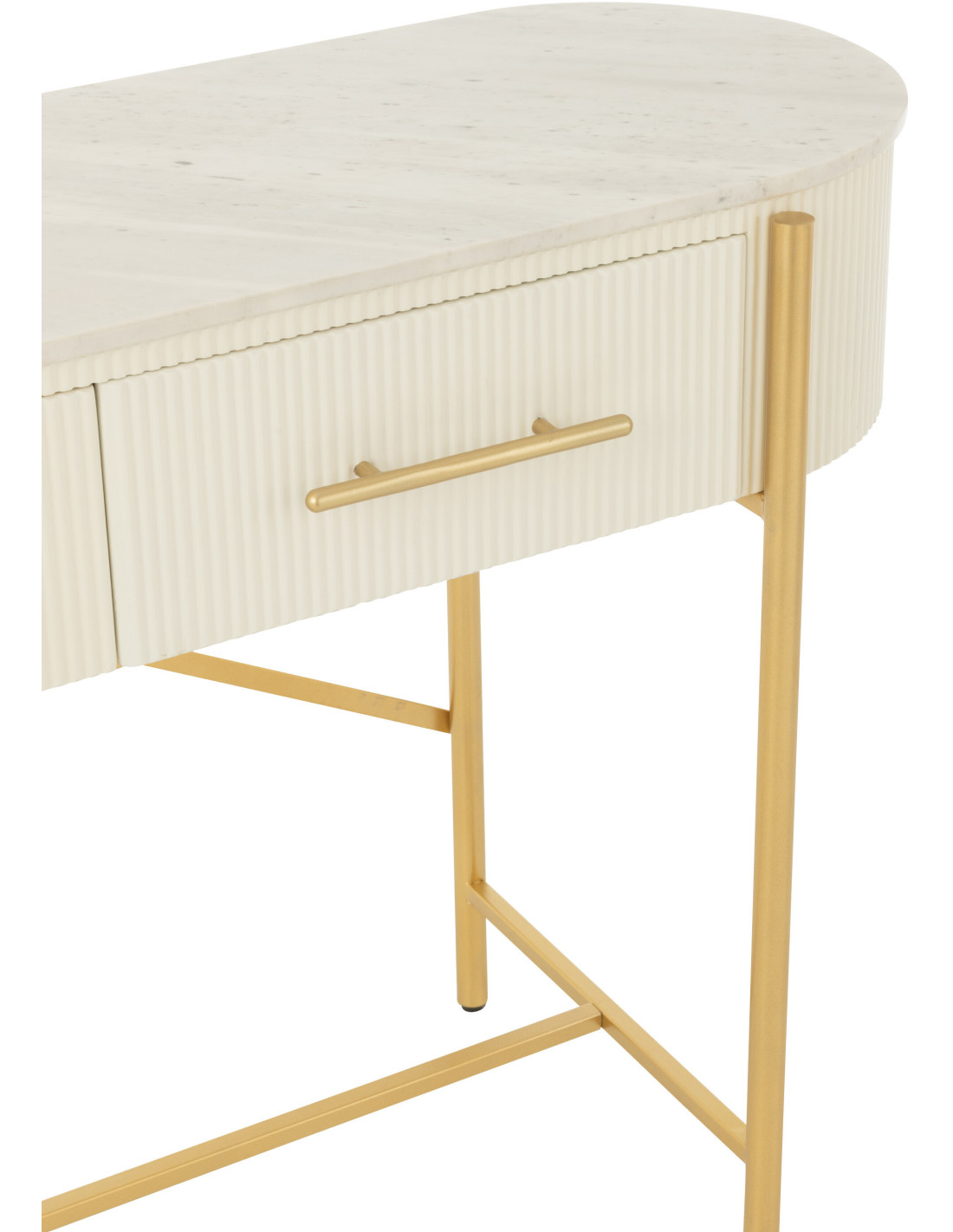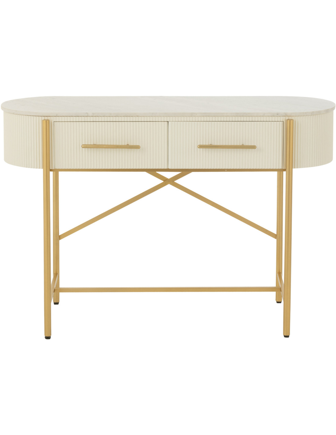 Console moderne chic Ovale 2 tiroirs en Marbre Blanc Bois MDF Métal Doré Wisteria