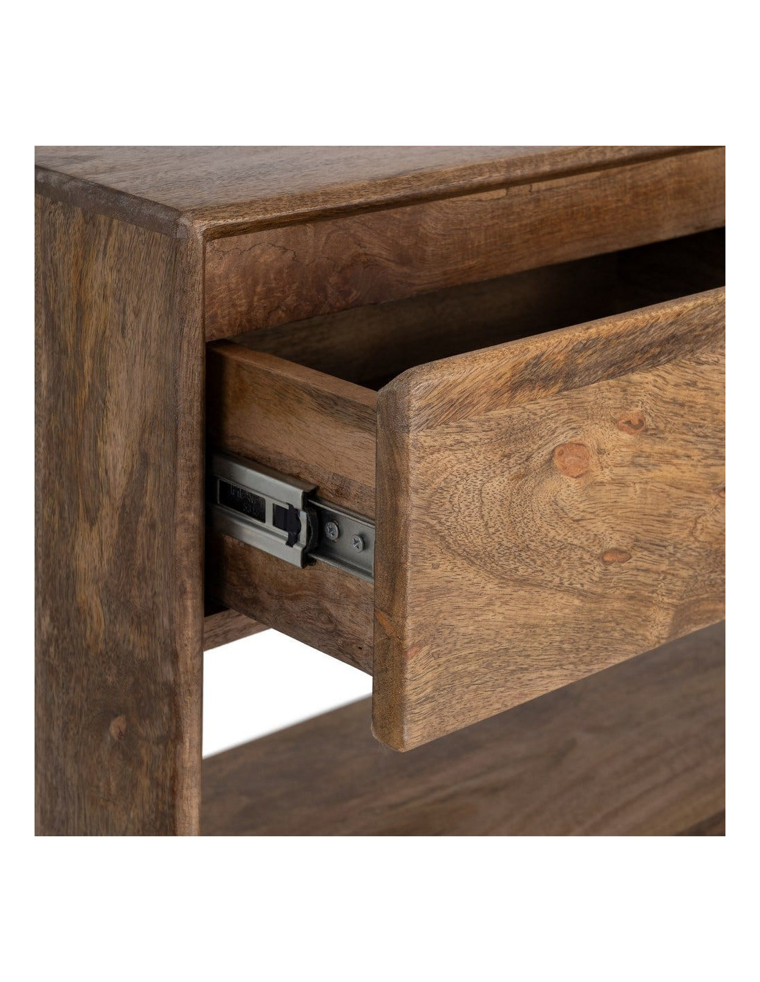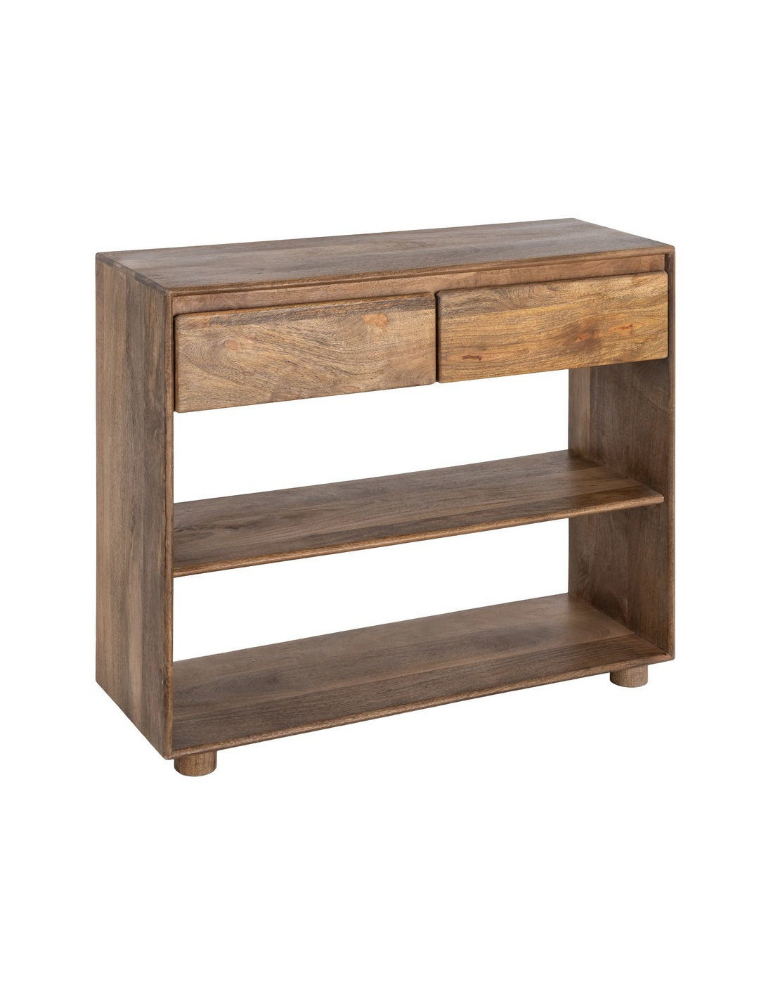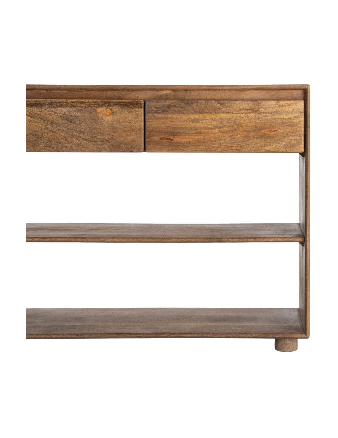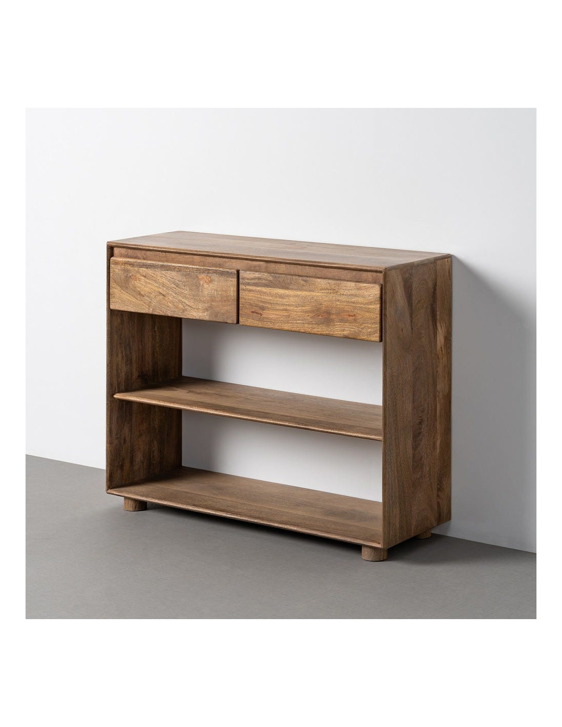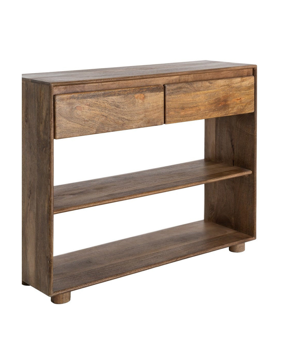 Console moderne chic Rectangulaire 2 tiroirs 2 étagères 100 cm Bois de manguier Marron Naturma