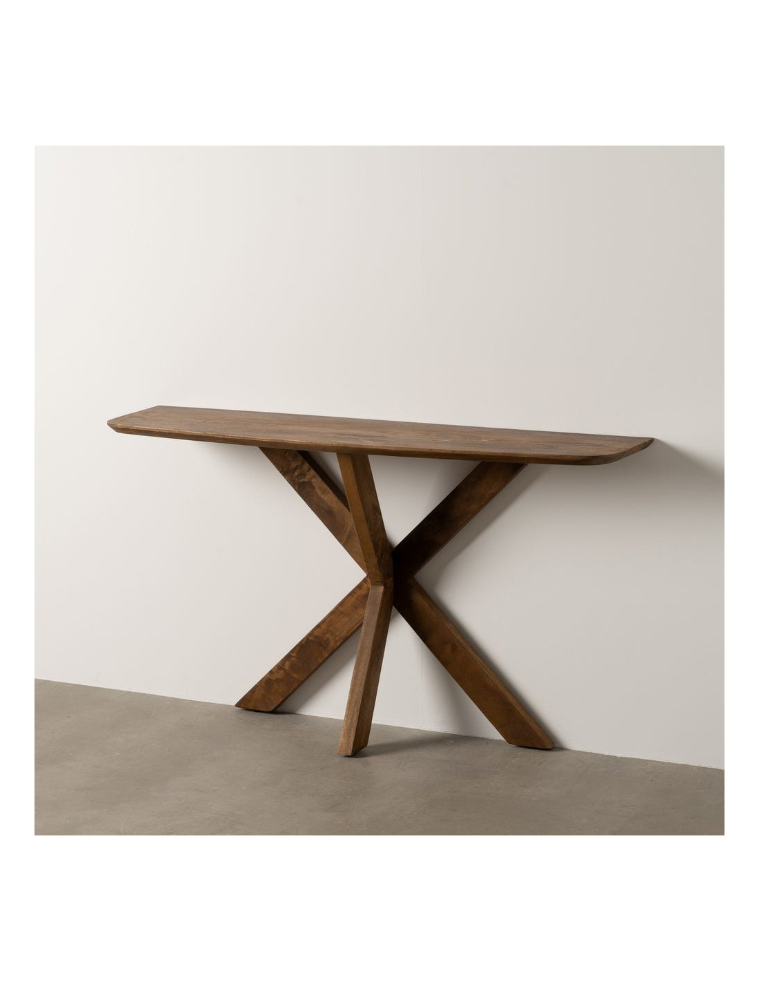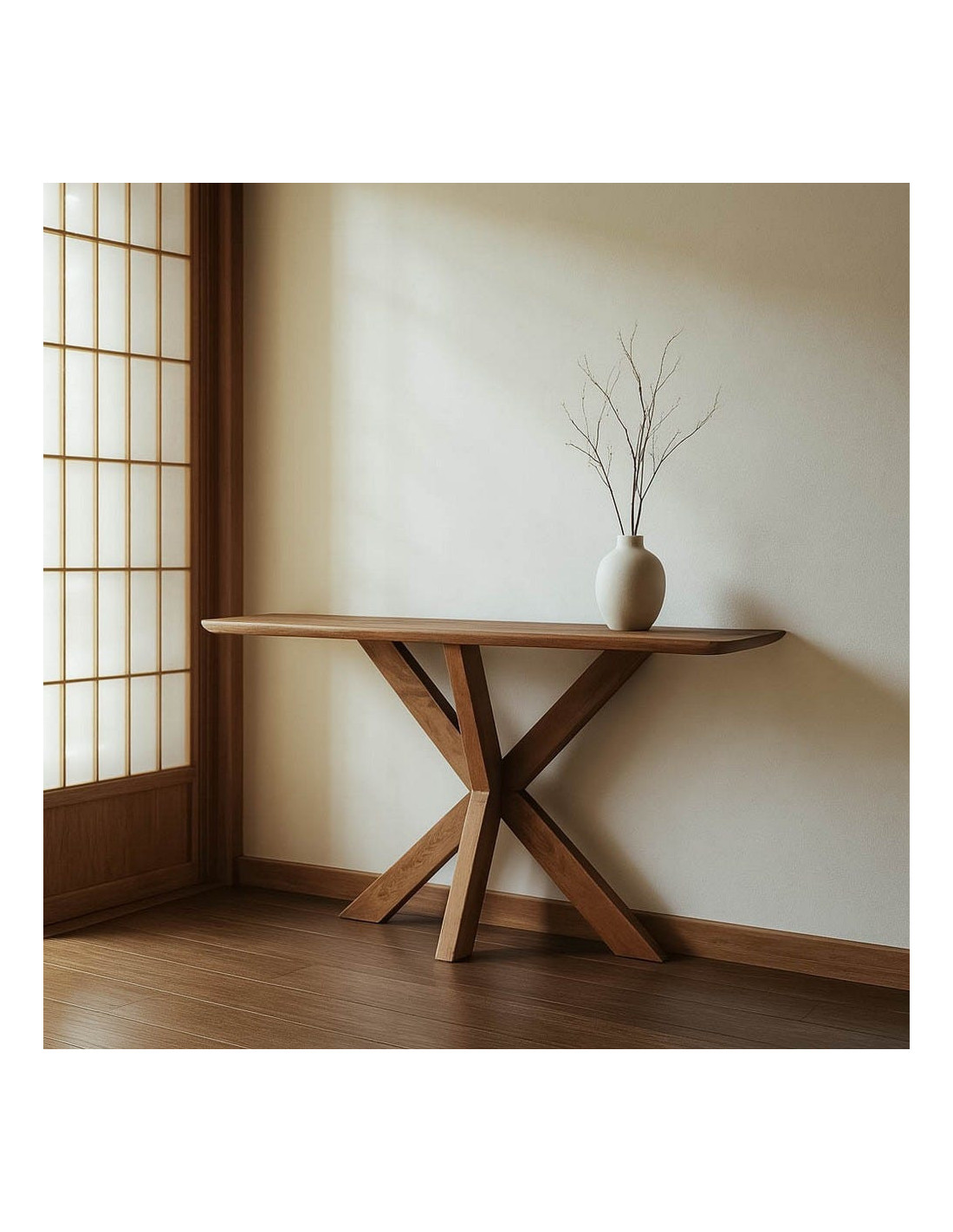 Son plateau spacieux et bien proportionné accueille lampe, vase ou objets décoratifs. Le bois de manguier dévoile des veinures uniques qui rappellent le travail artisanal. Avec sa structure à monter soi-même, cette console allie accessibilité et durabilité.