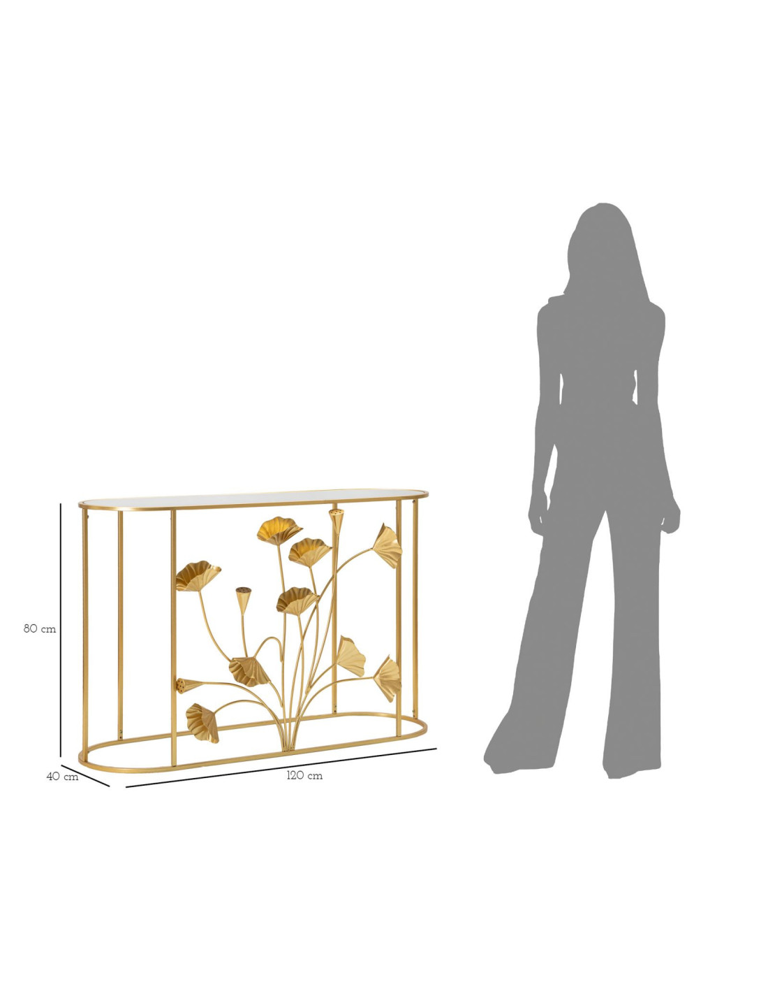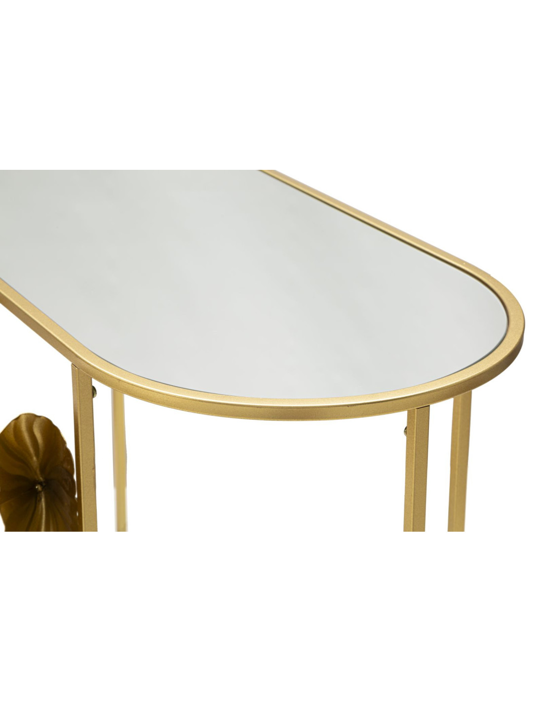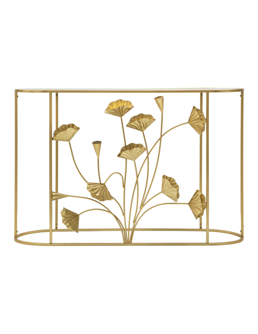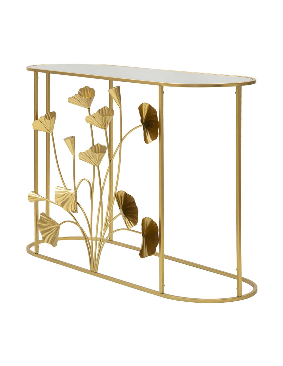 Console moderne Ovale en Métal Doré Miroir Motif fleurs Flow