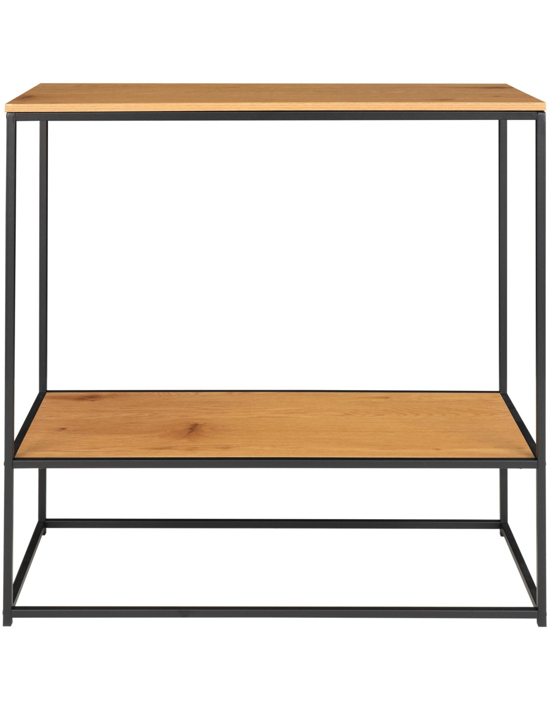 Console moderne Rectangulaire 1 étagère Métal Noir Panneau de particules Feuille de mélamine Naturel Effet chêne Vita