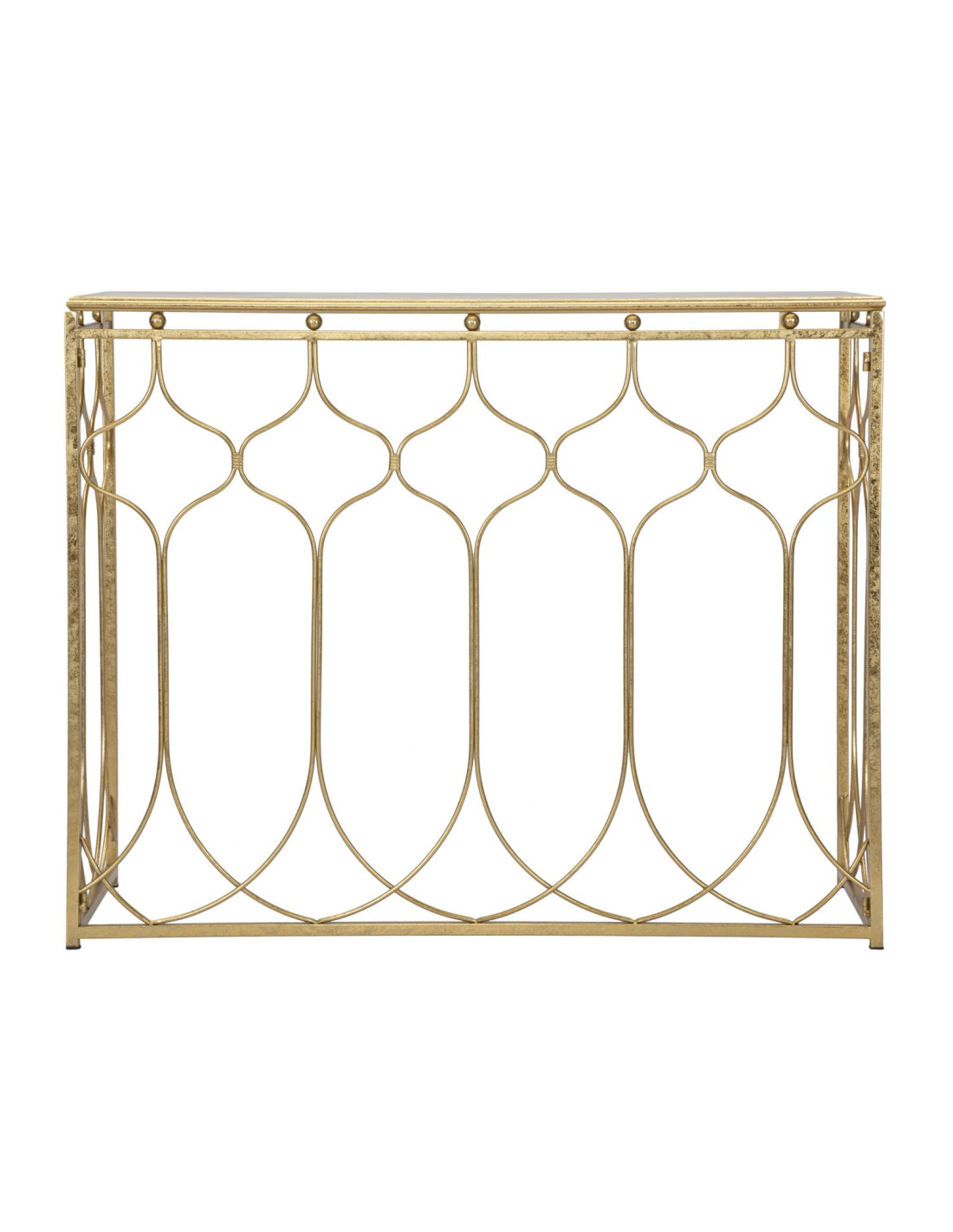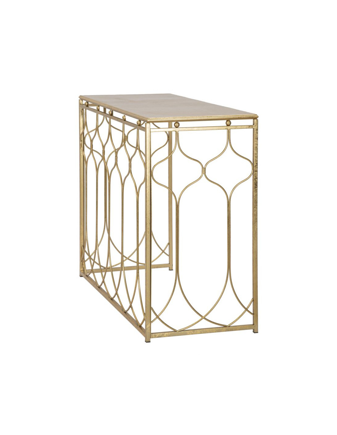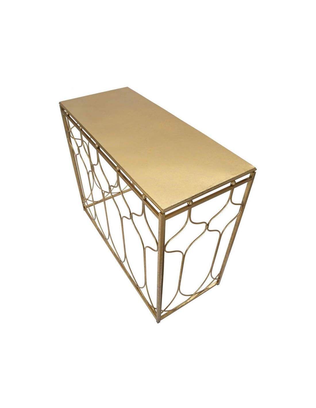 Console moderne Rectangulaire en Métal Doré Arabesque