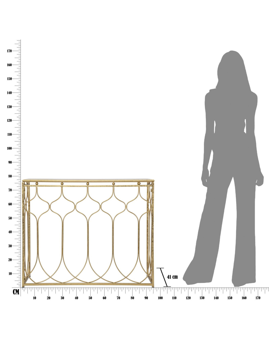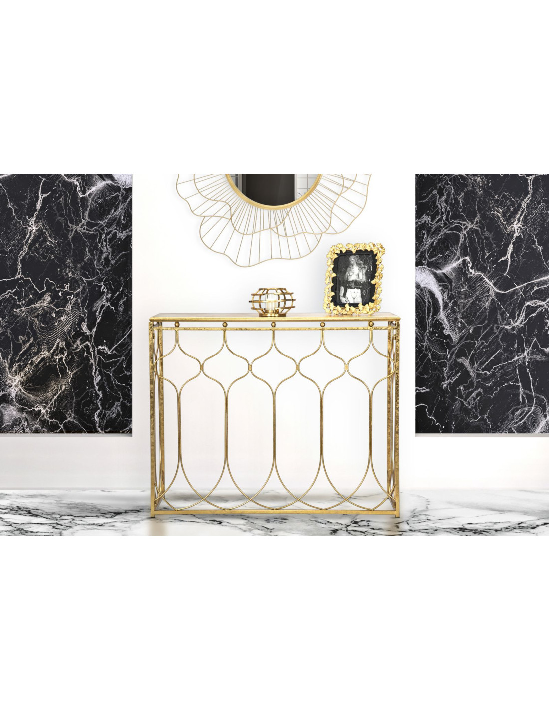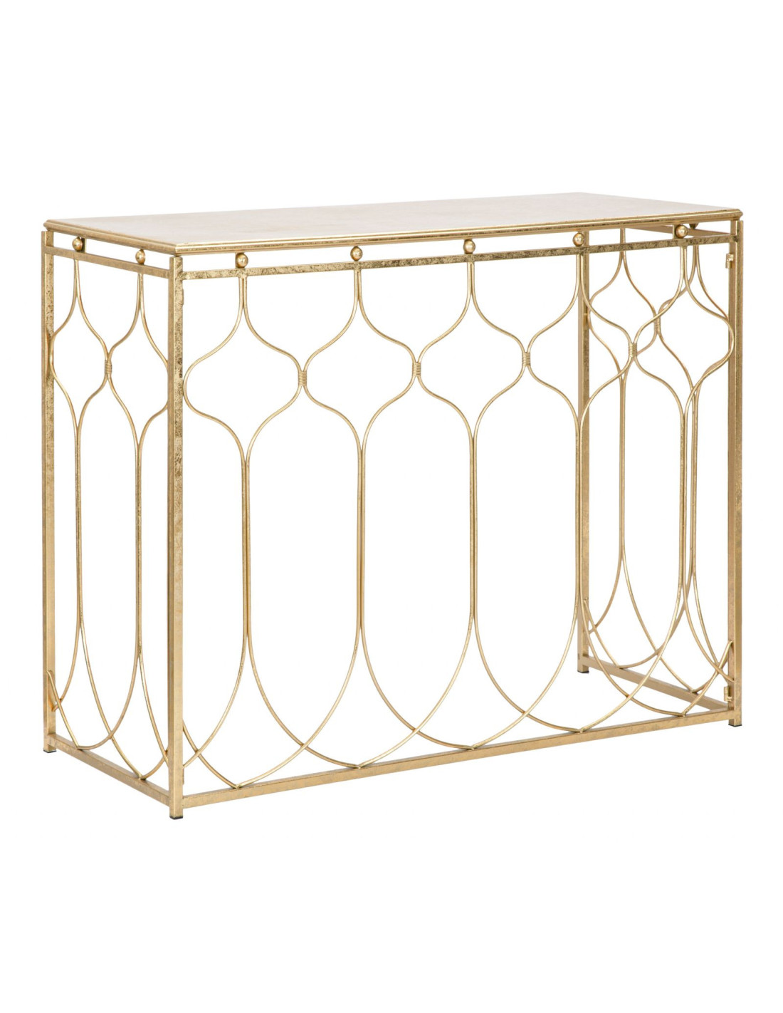 Console moderne Rectangulaire en Métal Doré Arabesque