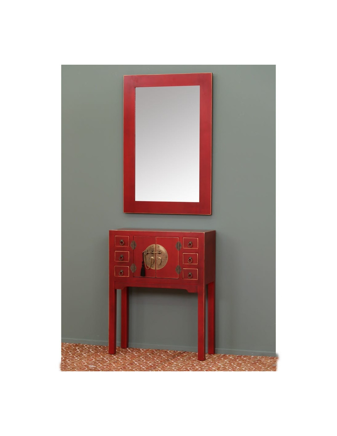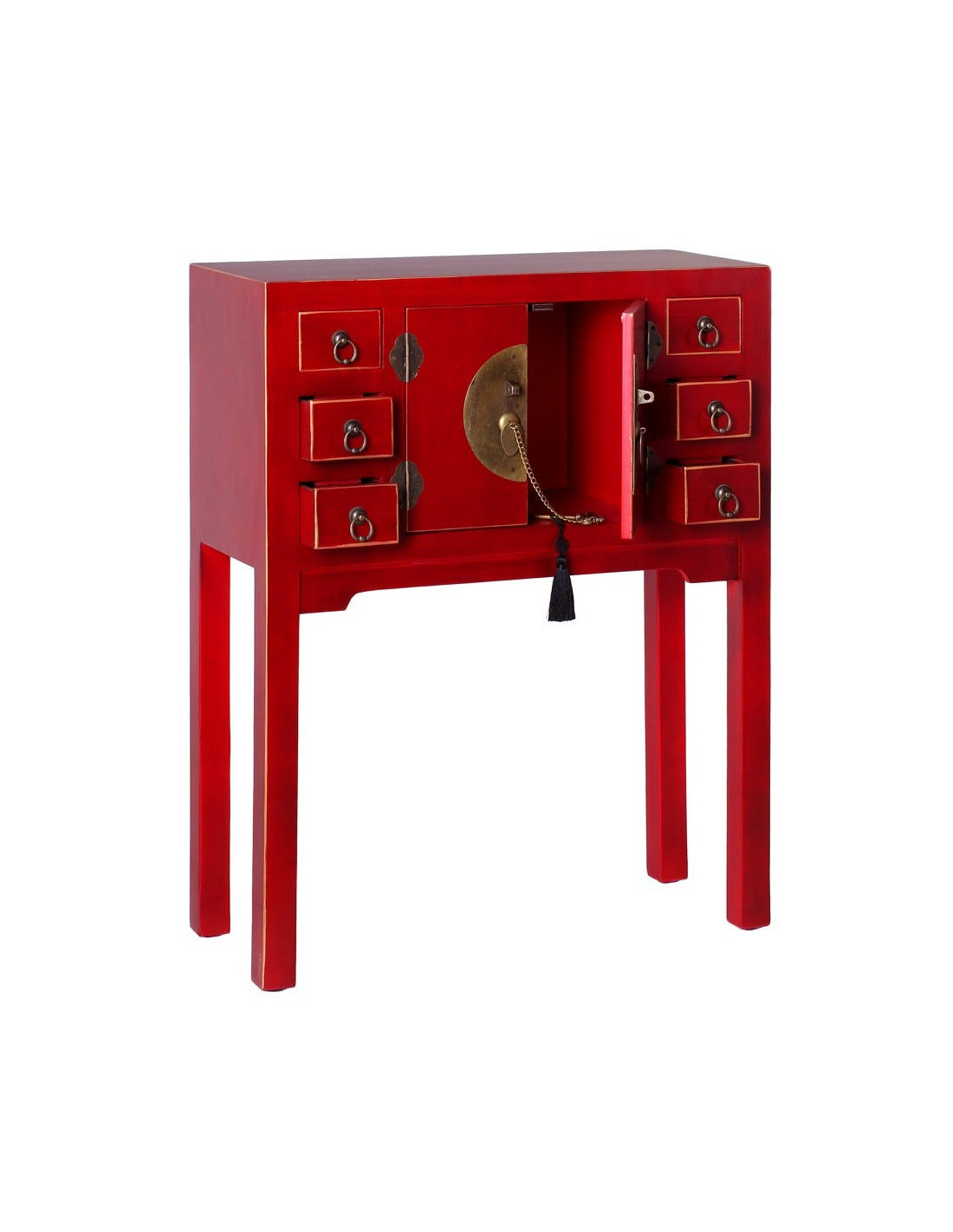 Console Rectangulaire 2 portes 6 tiroirs en Bois Rouge Oriente - 1