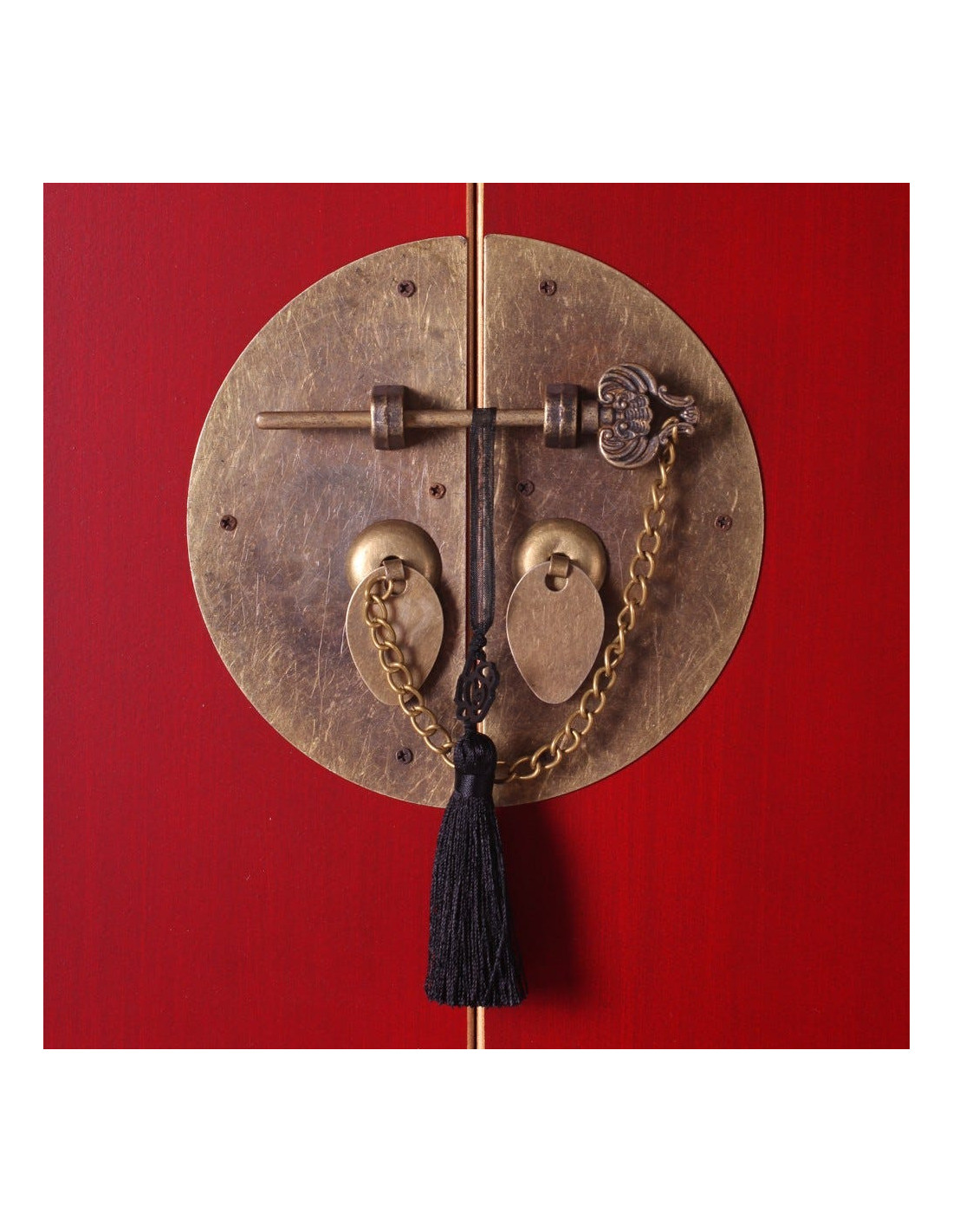 Console Rectangulaire 2 portes 6 tiroirs en Bois Rouge Oriente - 4