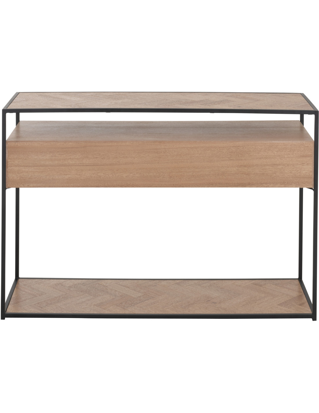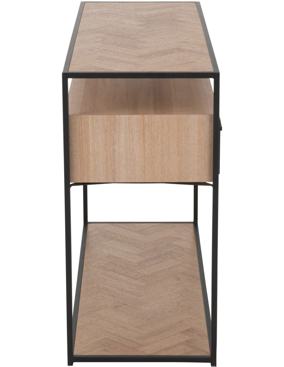 Console Rectangulaire 2 tiroirs 2 étagères Zigzag en Bois Naturel Métal Noir - 1