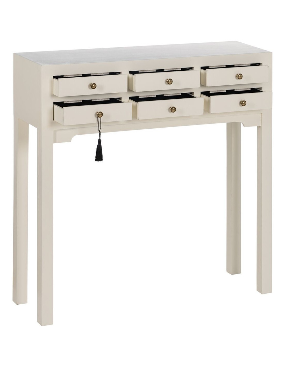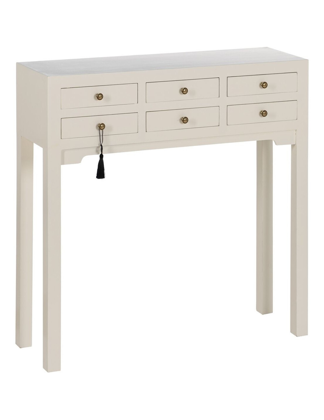Console Rectangulaire 6 tiroirs en Bois de sapin Blanc Oriente