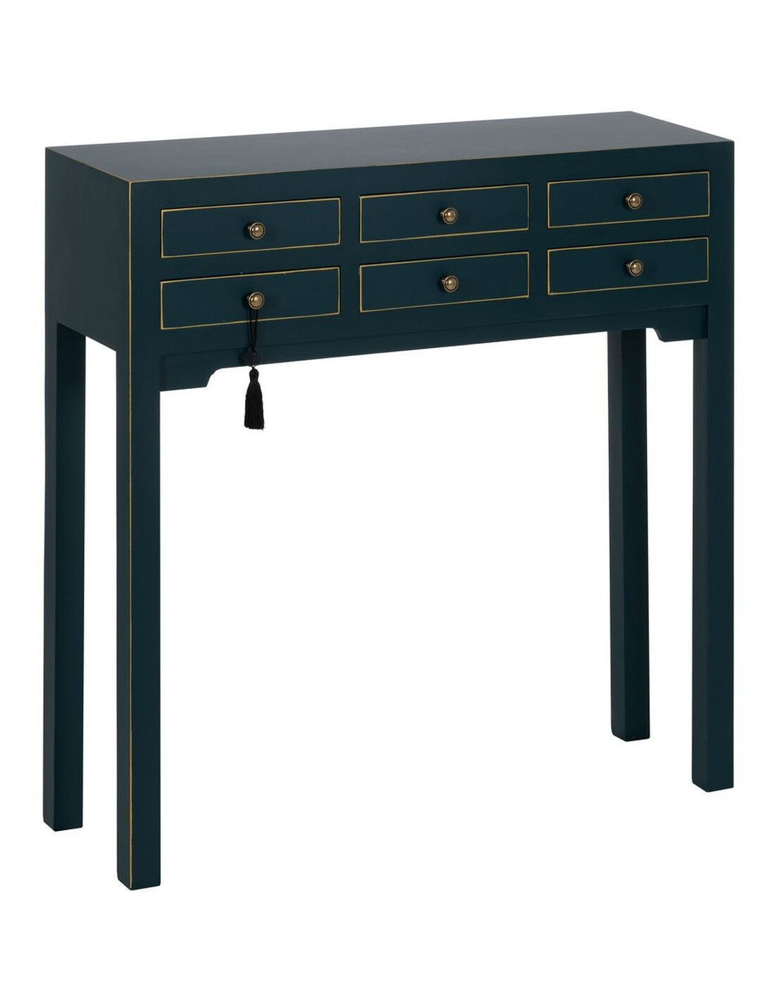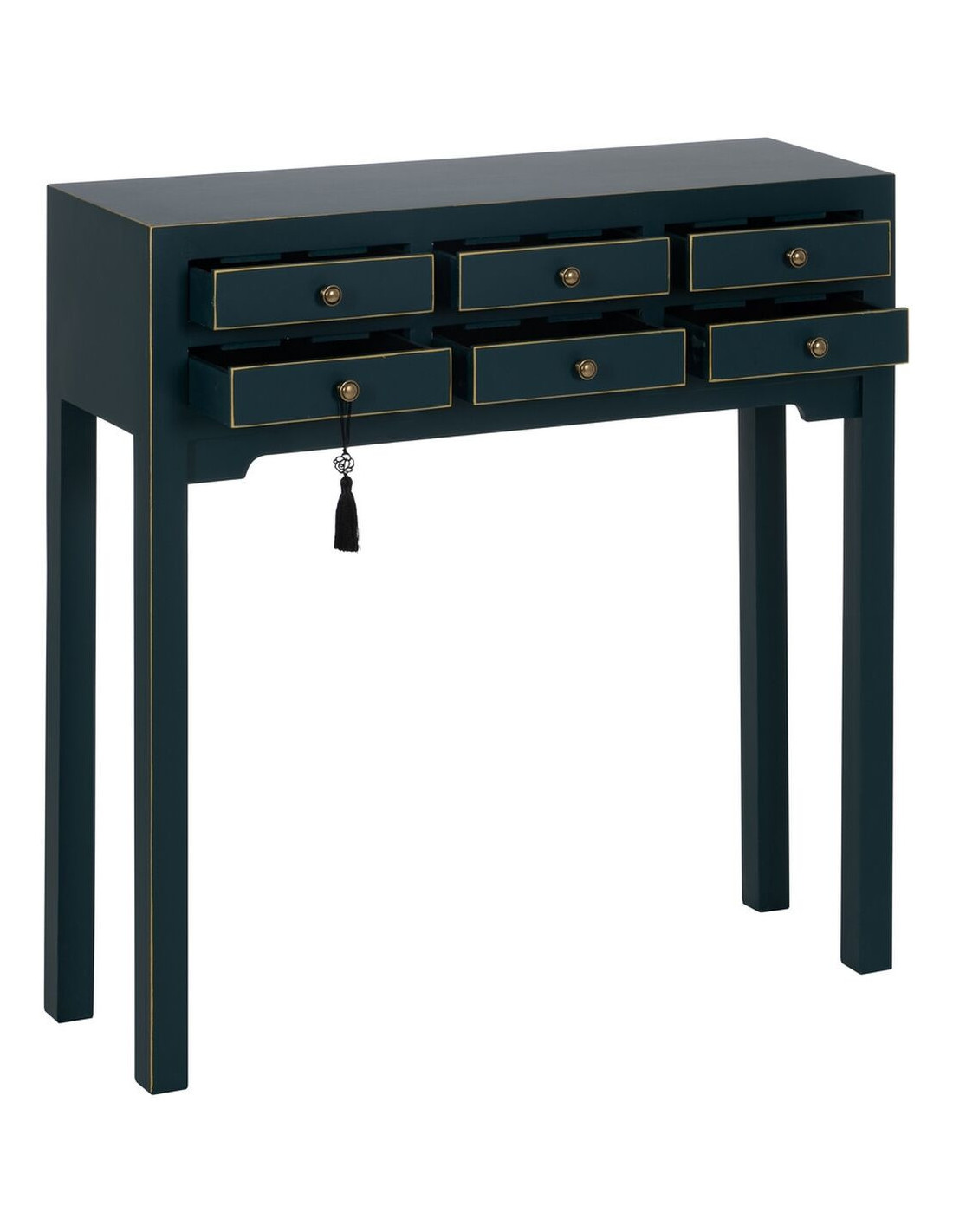 Console Rectangulaire 6 tiroirs en Bois de sapin Bleu Oriente