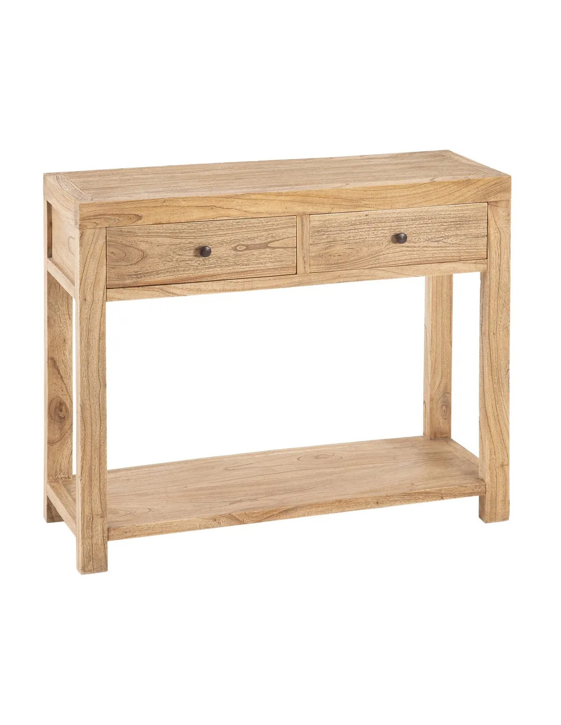 Console rustique Rectangulaire 2 tiroirs en Bois de mindi Naturel Miro