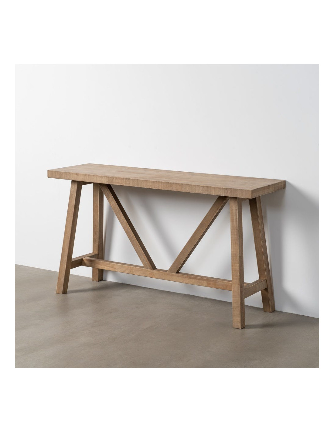 Console style campagne chic Rectangulaire 140 cm en Bois d'hévéa Naturel Malvio - 1