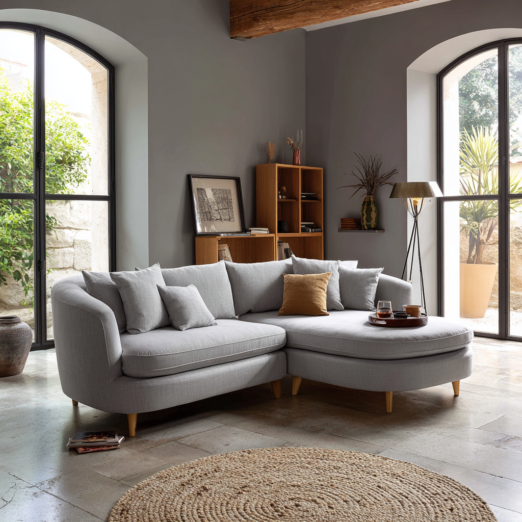 Le canapé d'angle reste une valeur sûre en 2025-2026, surtout pour les petits espaces et les familles. La tendance est aux formes arrondies et aux configurations modulables.