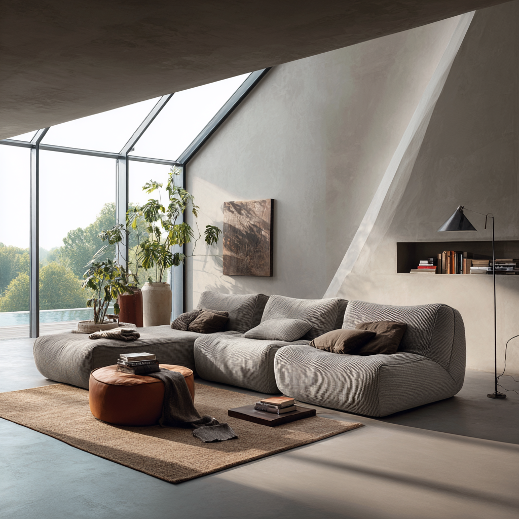 Le minimalisme continue de dominer en 2025-2026, mais avec une twist : les lignes épurées s'accompagnent désormais de volumes généreux. C'est le canapé minimaliste XXL, qui prouve que "moins c'est plus" ne signifie pas "petit".