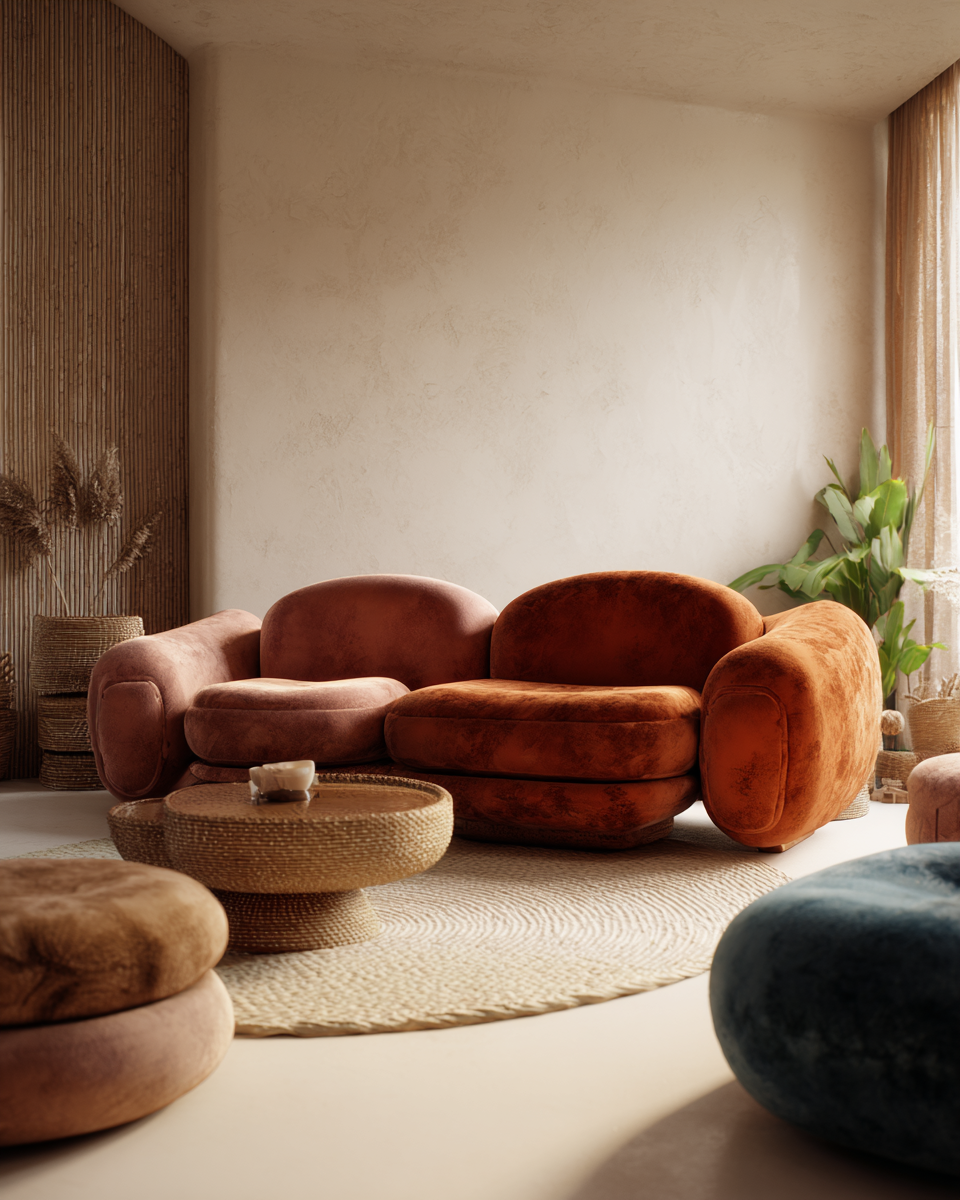 Les formes arrondies et enveloppantes créent une ambiance cocooning très recherchée en 2025-2026. Elles épousent votre corps et invitent à la détente.